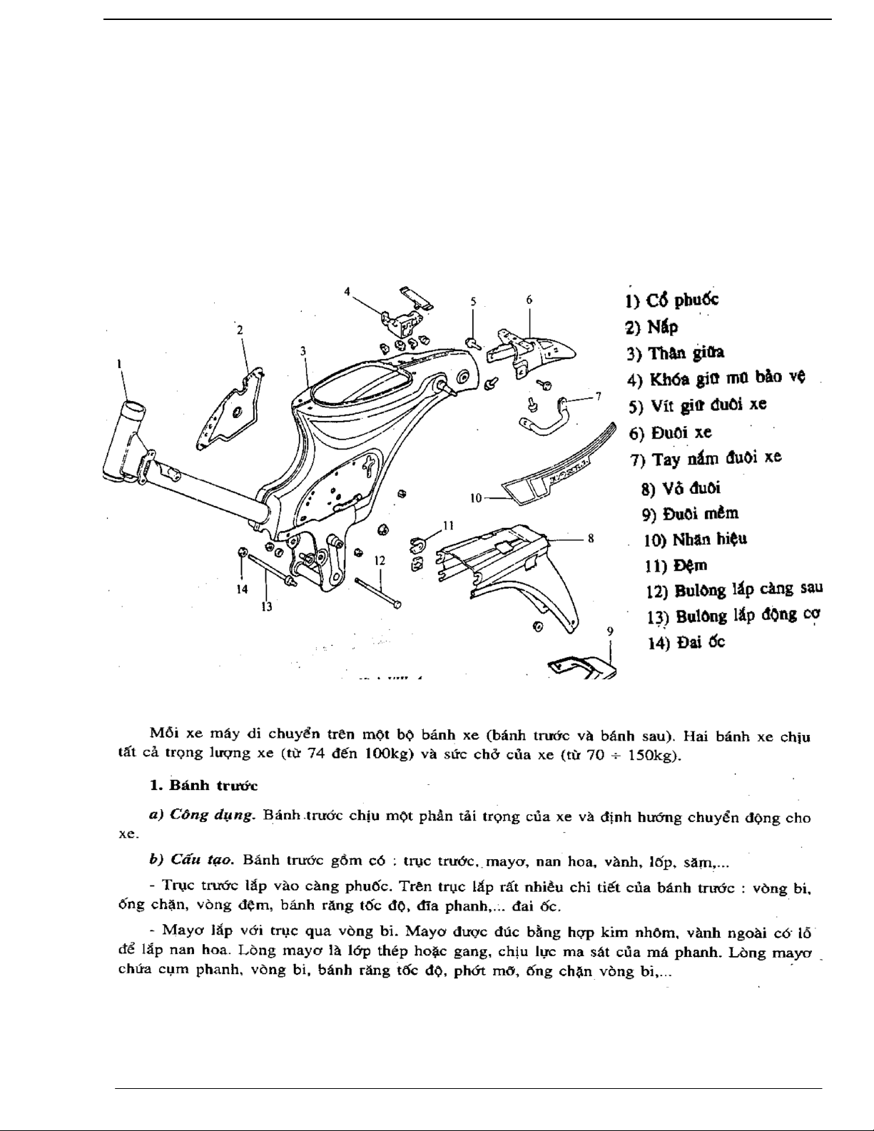 a. Công dụng: Trên khung xe lắp đặt tất cả các bộ phận của xe máy, có chỗ ngồi của người lái và chỗ