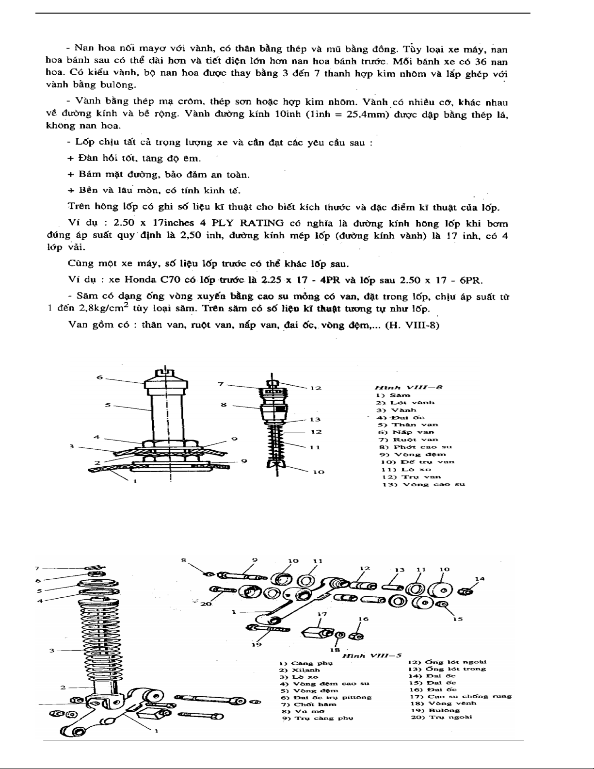 b. Cấu tạo. Bánh sau gồm có: Trục sau, mayơ, đĩa xích, nam hoa, vành, lốp, săm,…