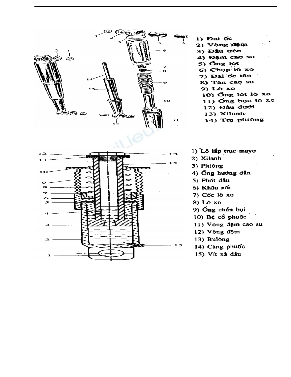 -Giảm xóc có tiếng kêu : do lắp ghép khôngchặt chỉnh lại ; do cao su giảm chấn hỏng ,lo xo gãy phải