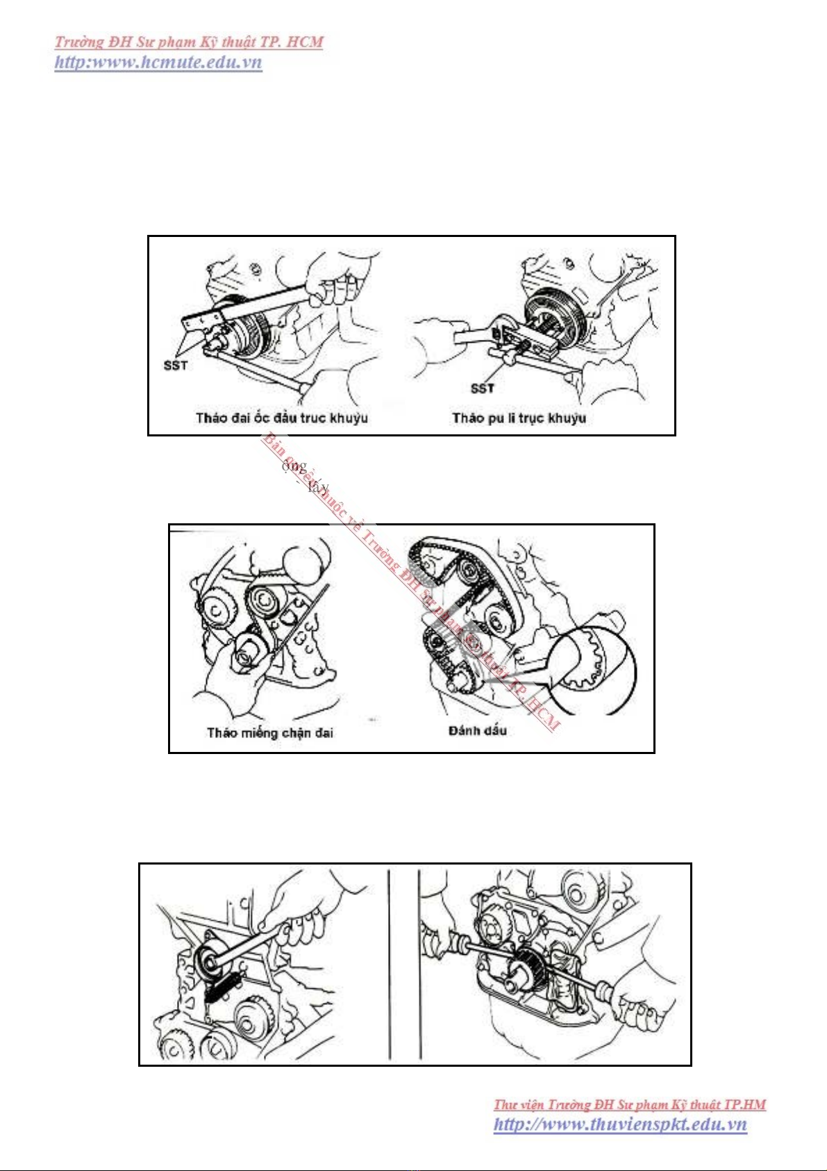 11. Duøng caûo thaùo pu li daãn ñoäng ñaàu truïc khuyûu vaø thaùo naép ñaäy maët döôùi.