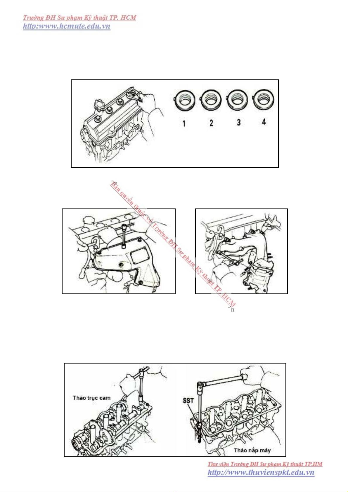 cam töø ngoaøi vaøo trong, laáy caùc naép coå truïc cam vaø truïc cam huùt ra ngoaøi.