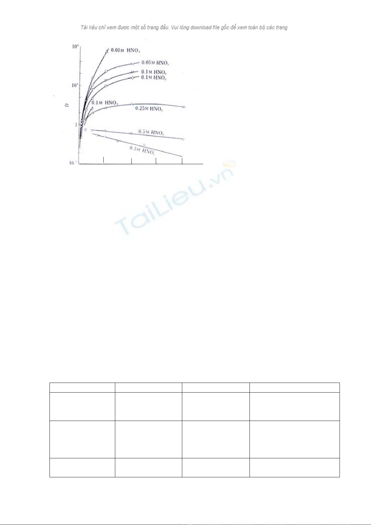 acid. Khi nồng độ các acid là 2M thì khả năng chiết của các acid sẽ giảm dần từ HNO3