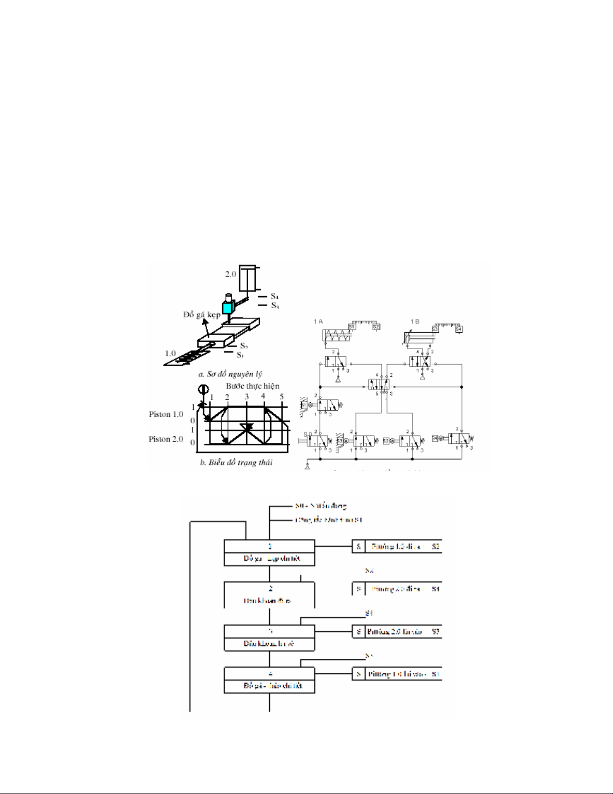Sơ đồ mạch khí nén của quy trình điều khiển trên được biểu biễn ở hình 5.2