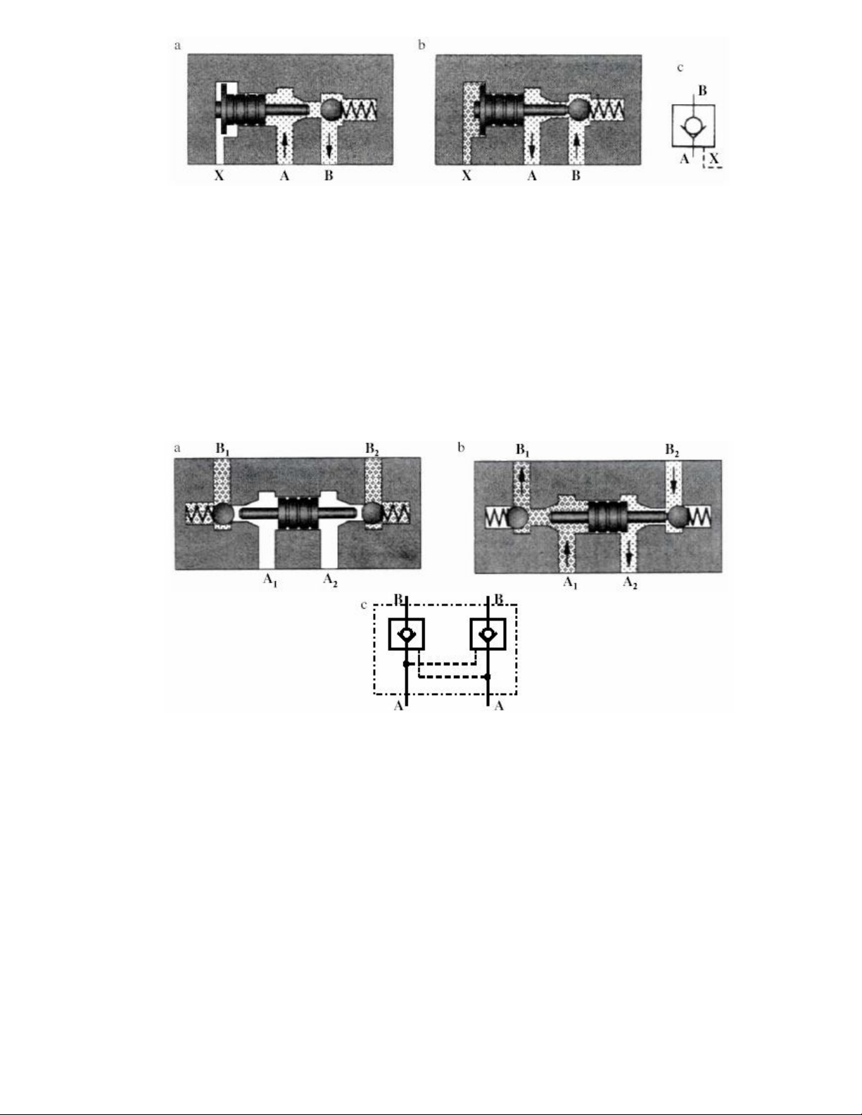 khi dầu chảy từ B qua A, thì phải có tín hiệu điều khiển bên ngoài tác động vào cửa X.
