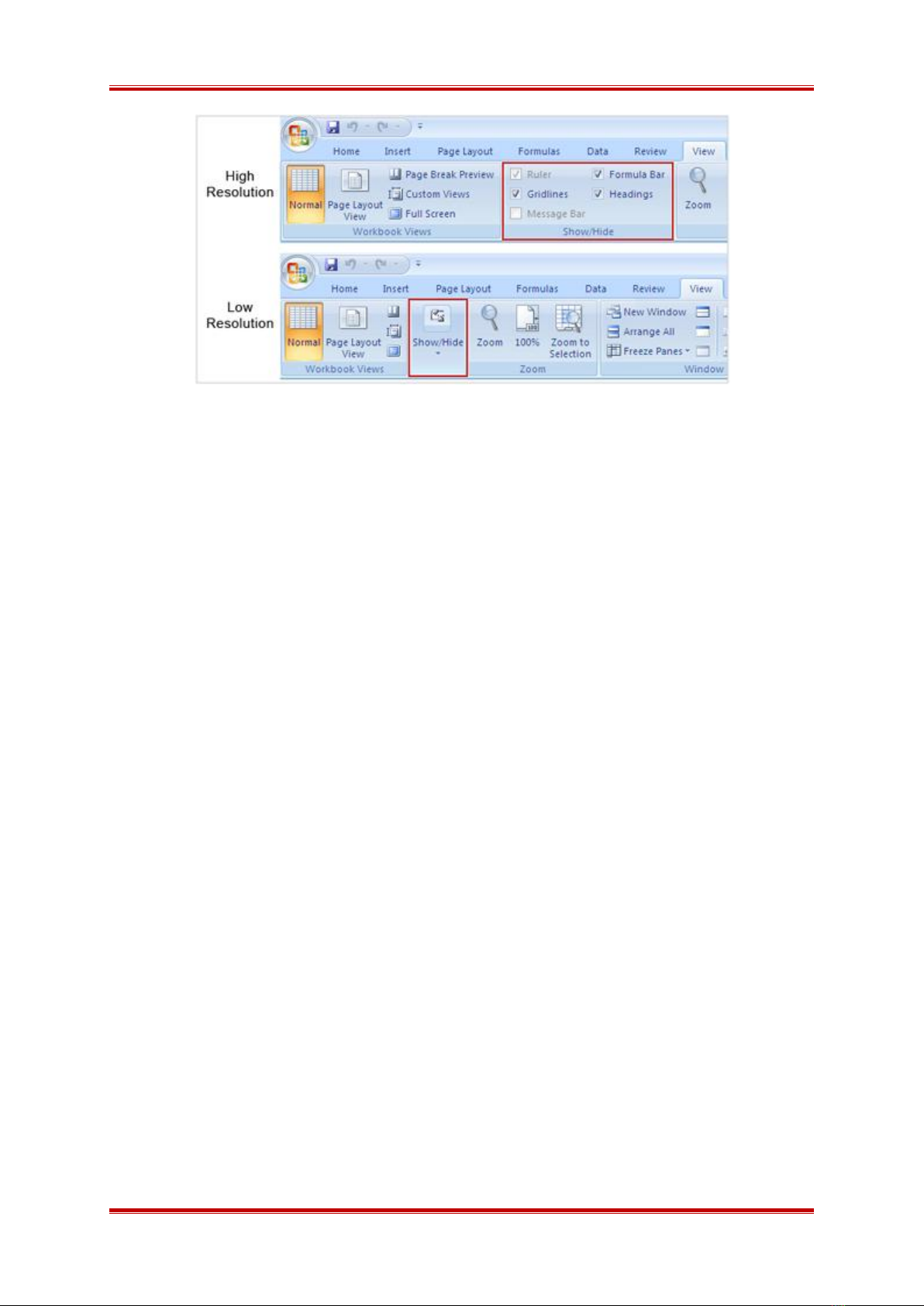 Nhìn vào hình minh họa trên, ở độ phân giải cao nhóm Show/Hide hiển thị đầy