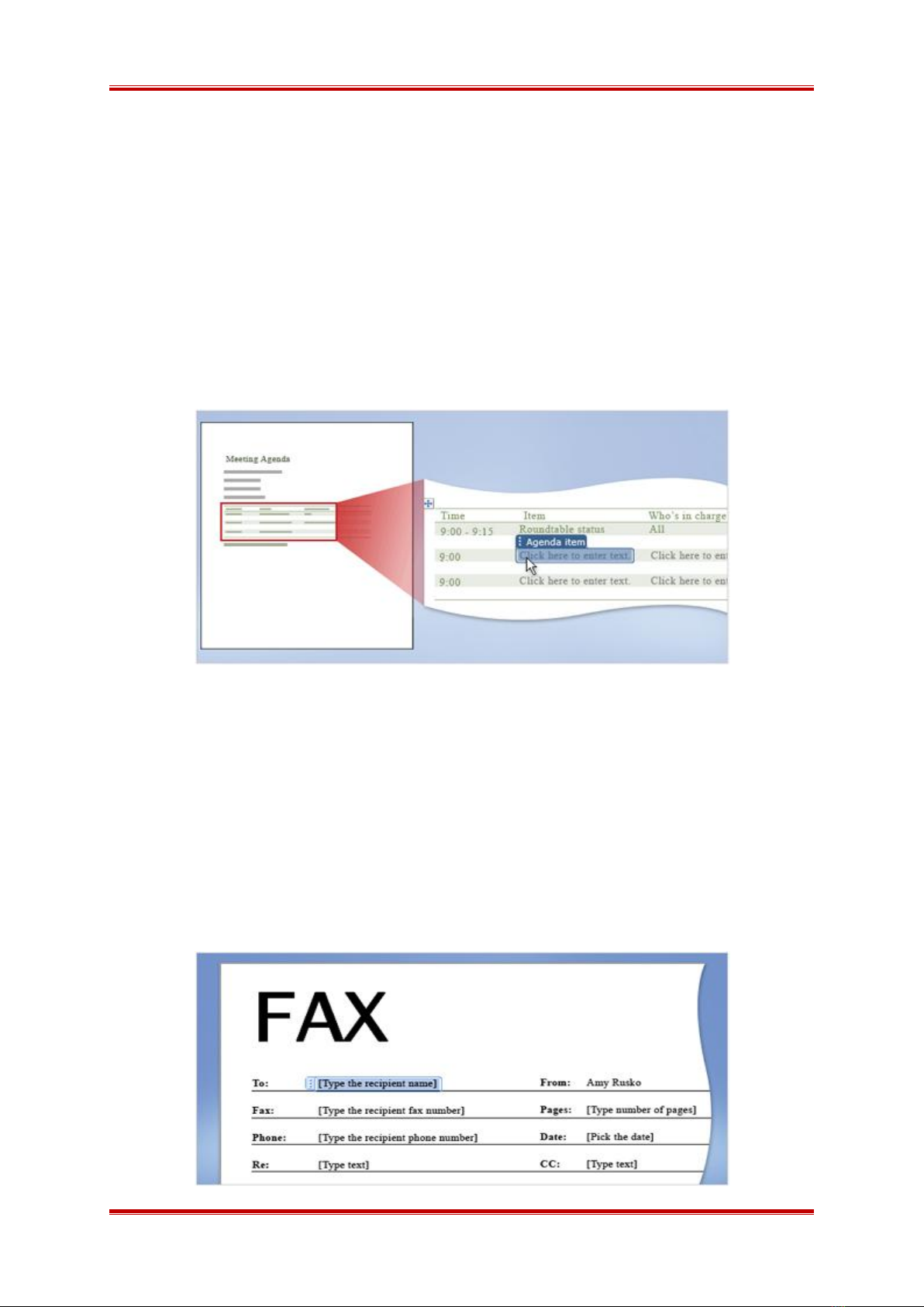 Có khoảng 30 biểu mẫu được cài đặt kèm với Word như: Thư từ, Fax, Báo Cáo,