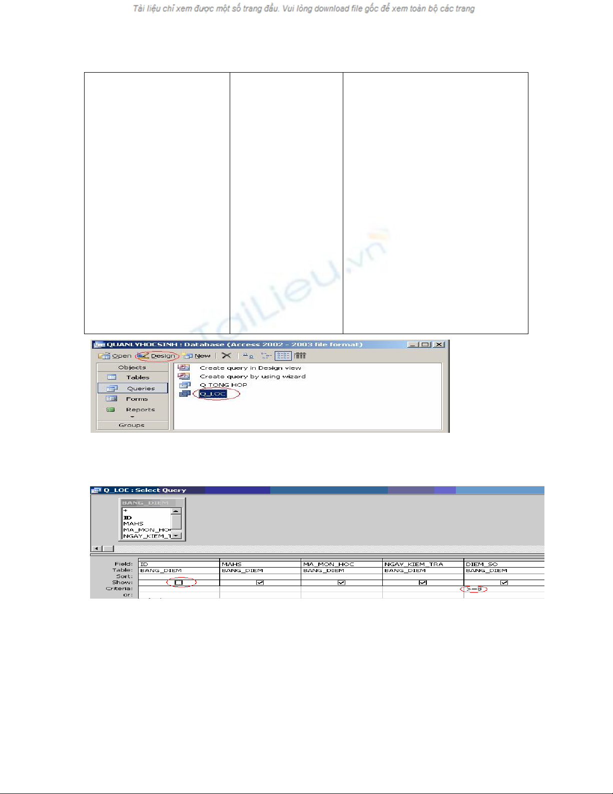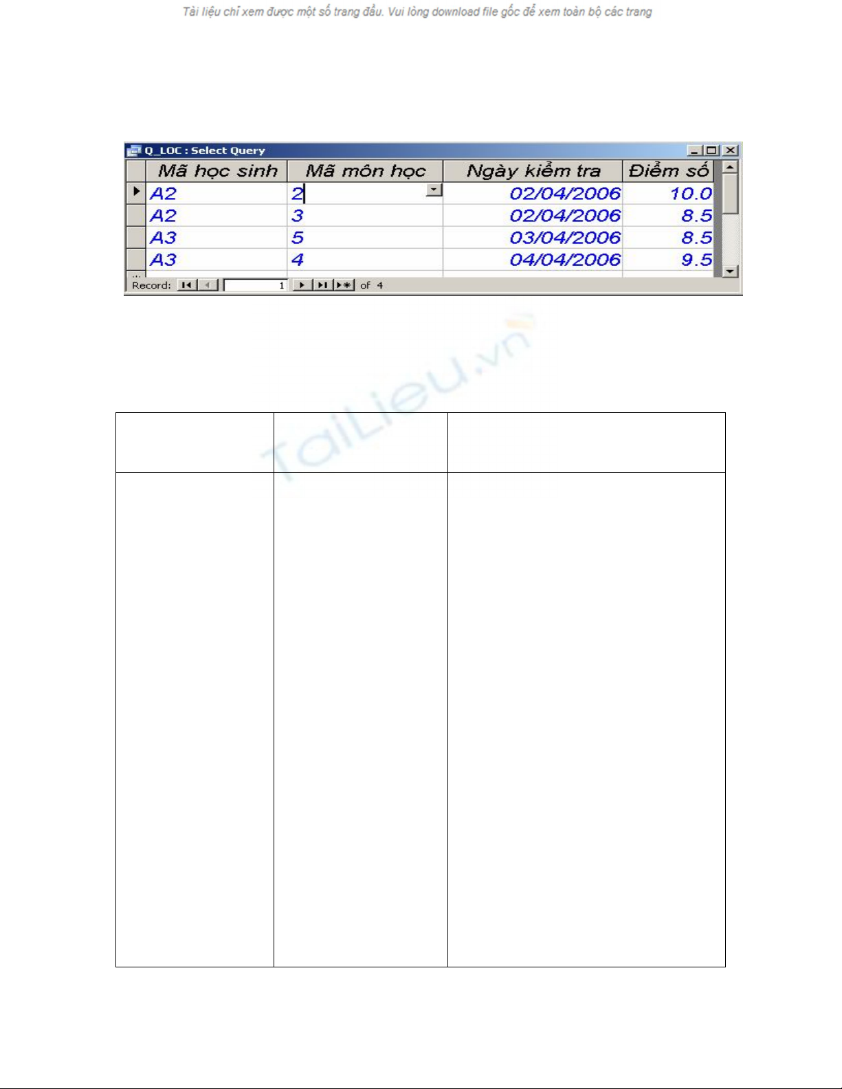 Tiết 23 §4 Truy vấn dữ liệu - (Tiết 3/4 tiết)