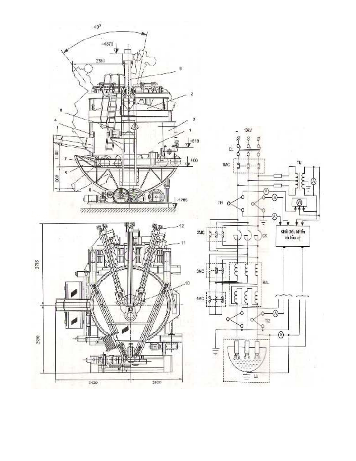 Cấu tạo và kết cấu của lò hồ quang được giới thiệu trên hình 3.1