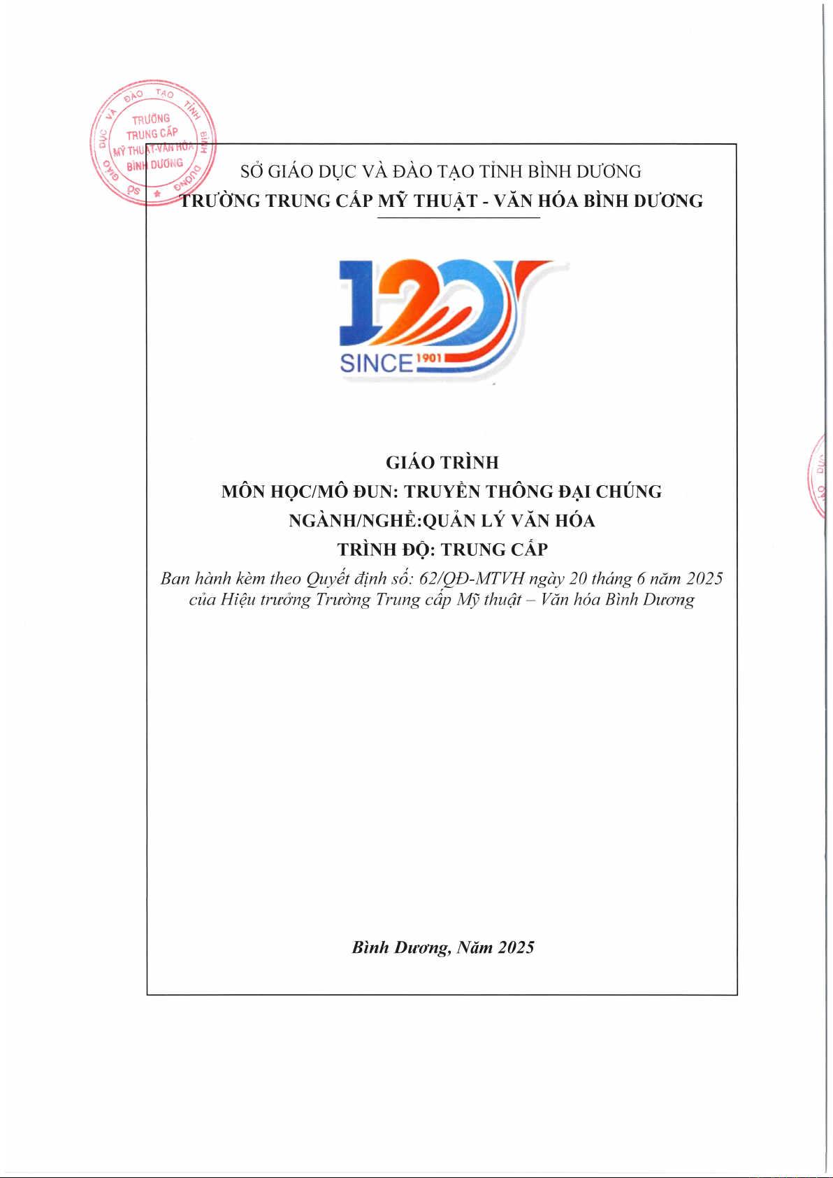 Sinh viên trình độ trung cấp ngành Quản lý Văn hóa và các cá nhân quan tâm đến vai trò của truyền thông đại chúng trong xã hội.