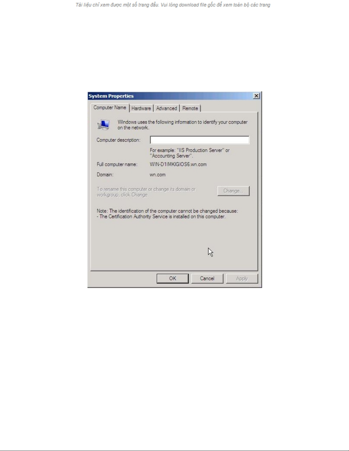 Server 2003, tham khảo trong hình A. Kích nút Change để xuất hiện hộp thoại