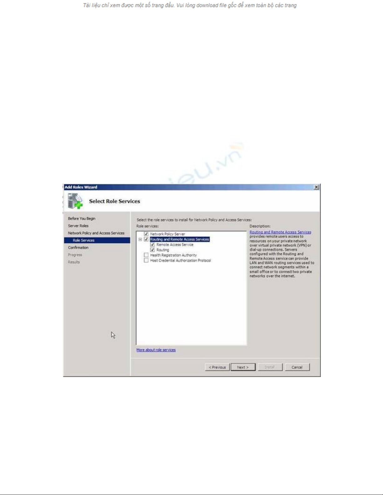 đặt. Chọn hộp kiểm tương ứng với Network Policy Server, Routing và Remote