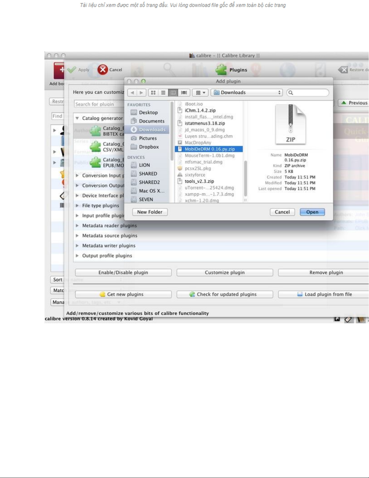 5. Mở calibre. Vào mục Preferences. Advanced. Plugins. Chọn Load Plugin from file và