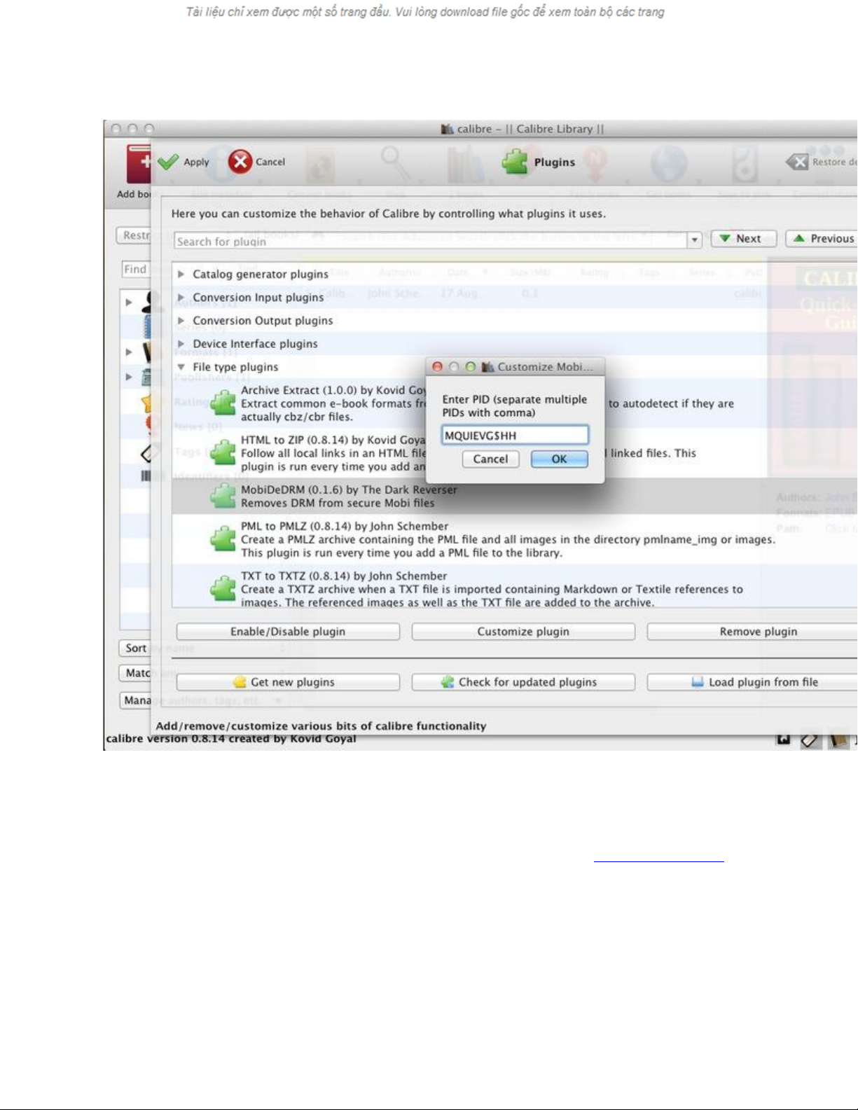 6. Sắp xong rồi, bước cuối cùng là bấm vào Plugin "MobiDeDRM (0.16)..." (nằm trong mục File