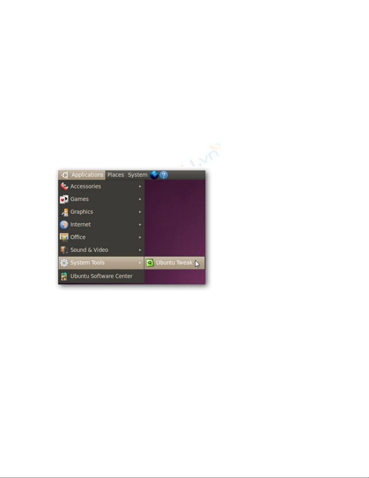 Khởi động Ubuntu Tweak tại Applications > System Tools: