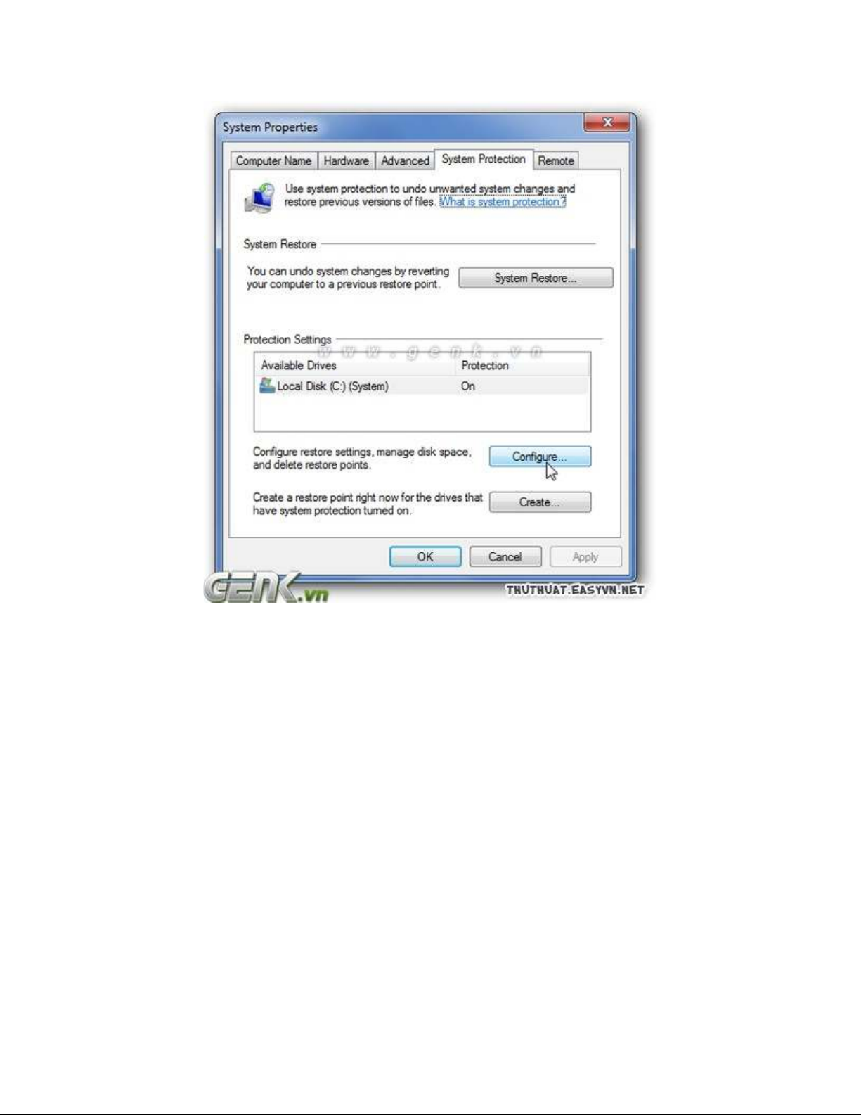 Properties, ch n ti p "System Protection" danh sách bên trái. ế