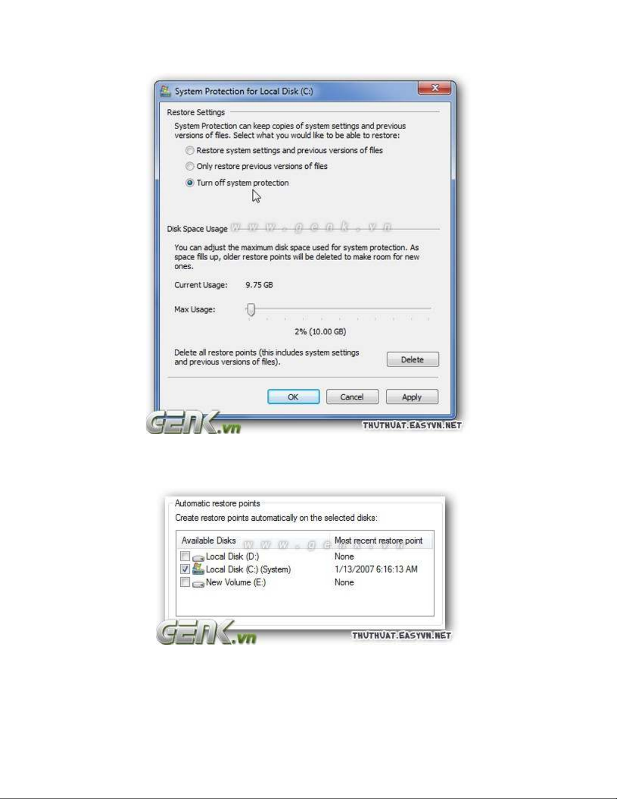 Ch n "Turn off system protection", b m "OK" đ đóng h p tho i và kh i đ ng l i máy.
