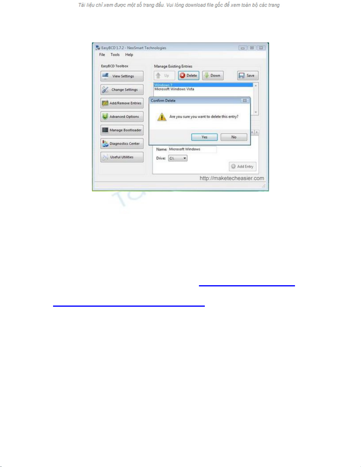 bỏ Windows 7 khỏi hệ thống đó là phải xóa bỏ menu