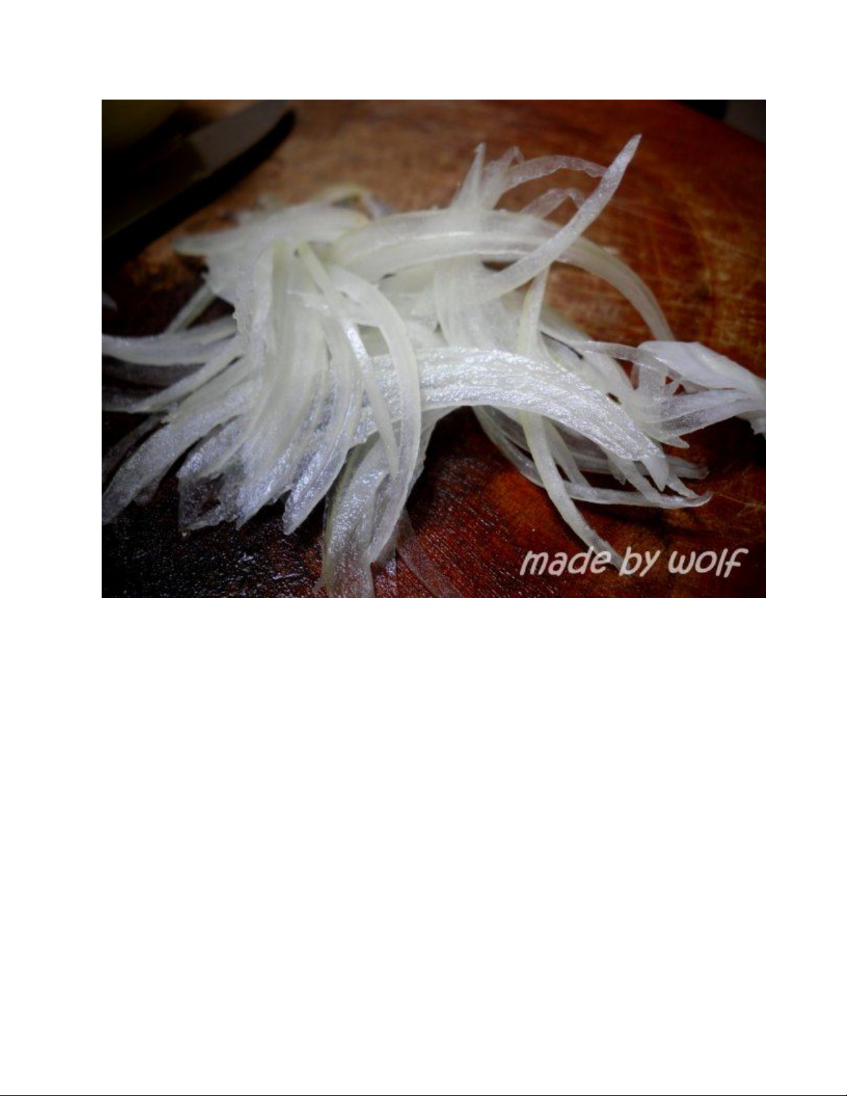 Hành tây: bóc vỏ, cắt theo chiều dọc dạng lưỡi liềm, thật mỏng.