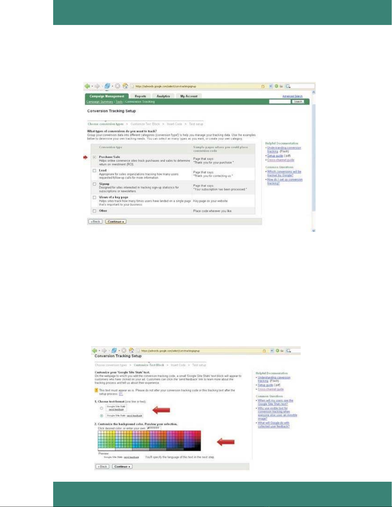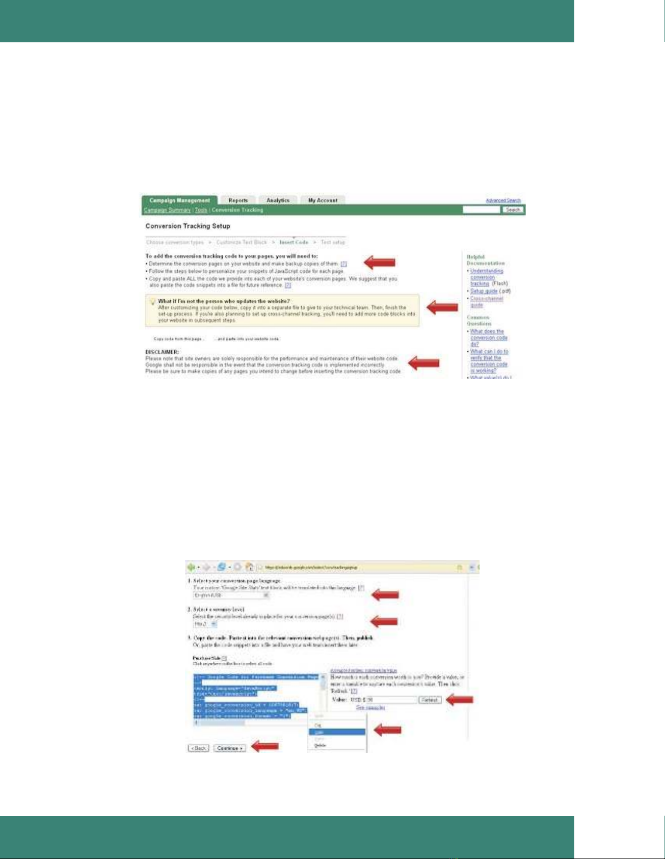 landing page where you insert the conversion tracking code. This page asks you to set the