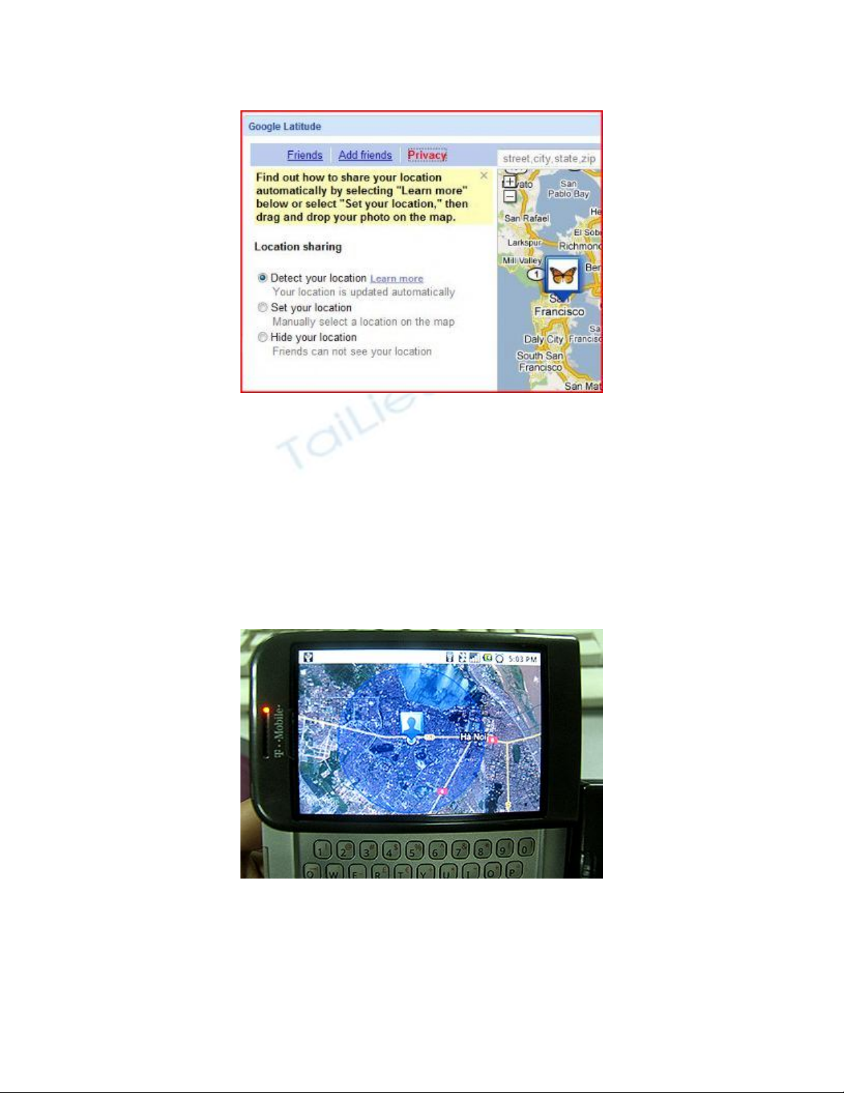 google.com/latitude trên trình duyệt của điện