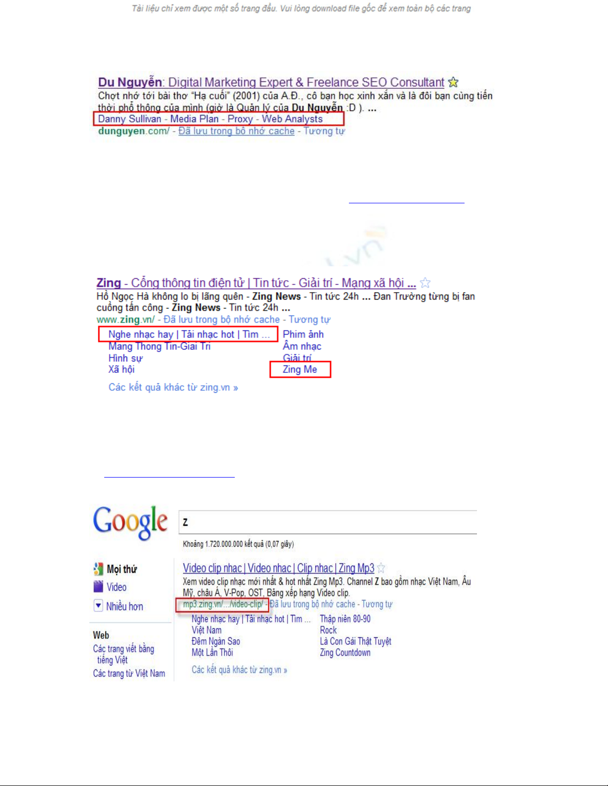 Sitelinks của www.zing.vn có 2 link đến mp3.zing.vn và me.zing.vn