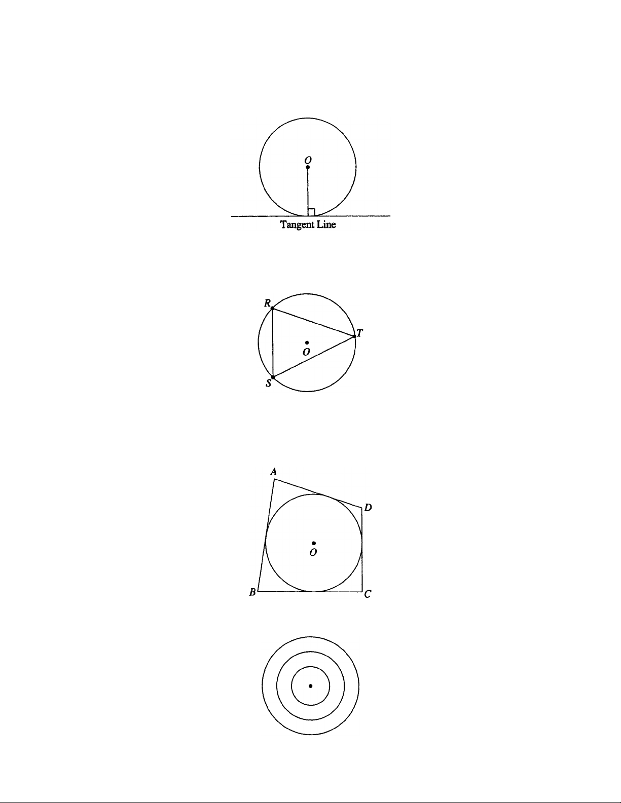 circle. A radius with its endpoint at the point of tangency is perpendicular to the
