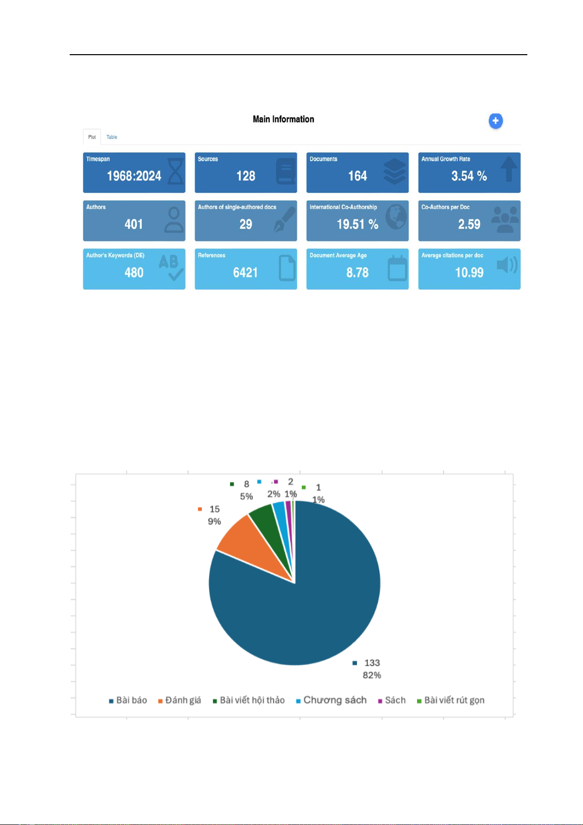 liệu Scopus. Trong đó có đến 82% là các bài báo khoa học, tiếp theo là bài đánh giá (9%), các