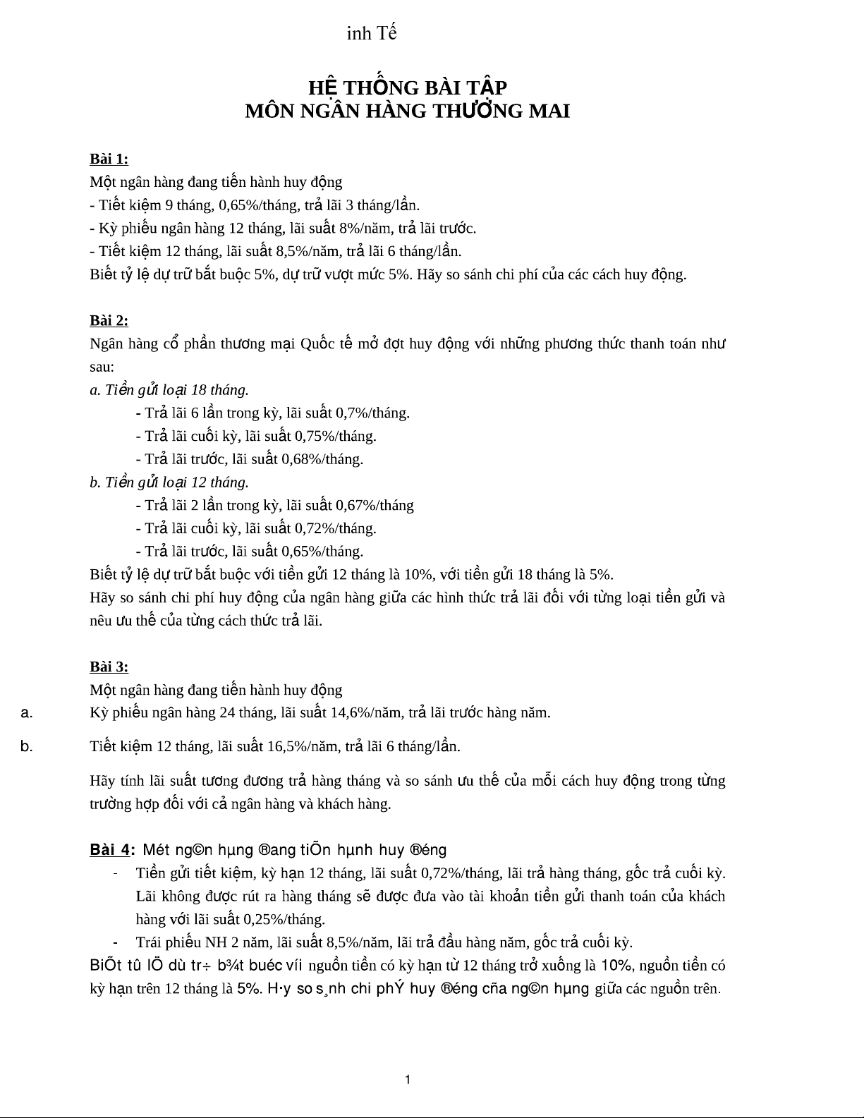 Bài tập nghiệp vụ ngân hàng thương mại - Nguyễn Thị Hương