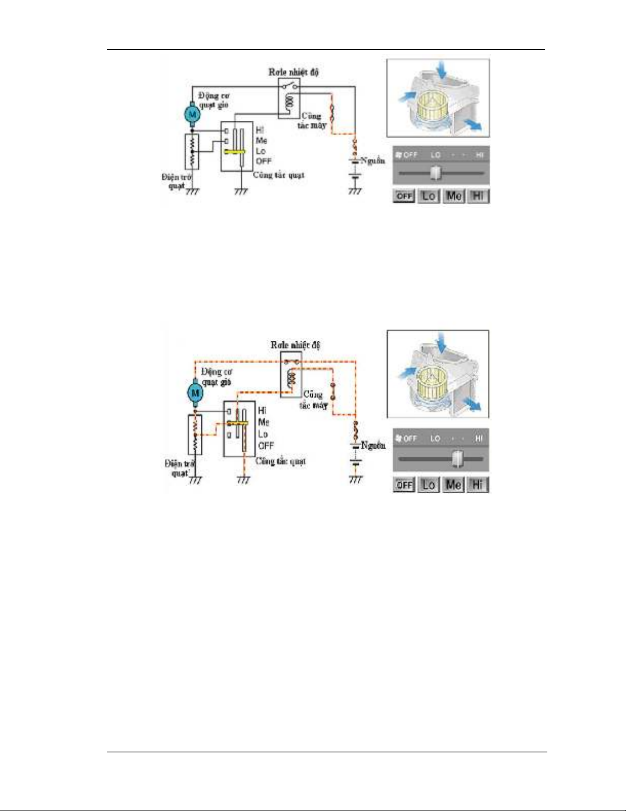 quạt, dòng điện đi qua một phần qua điện trở quạt rồi ra mát. So với chế độ Low, hiệu