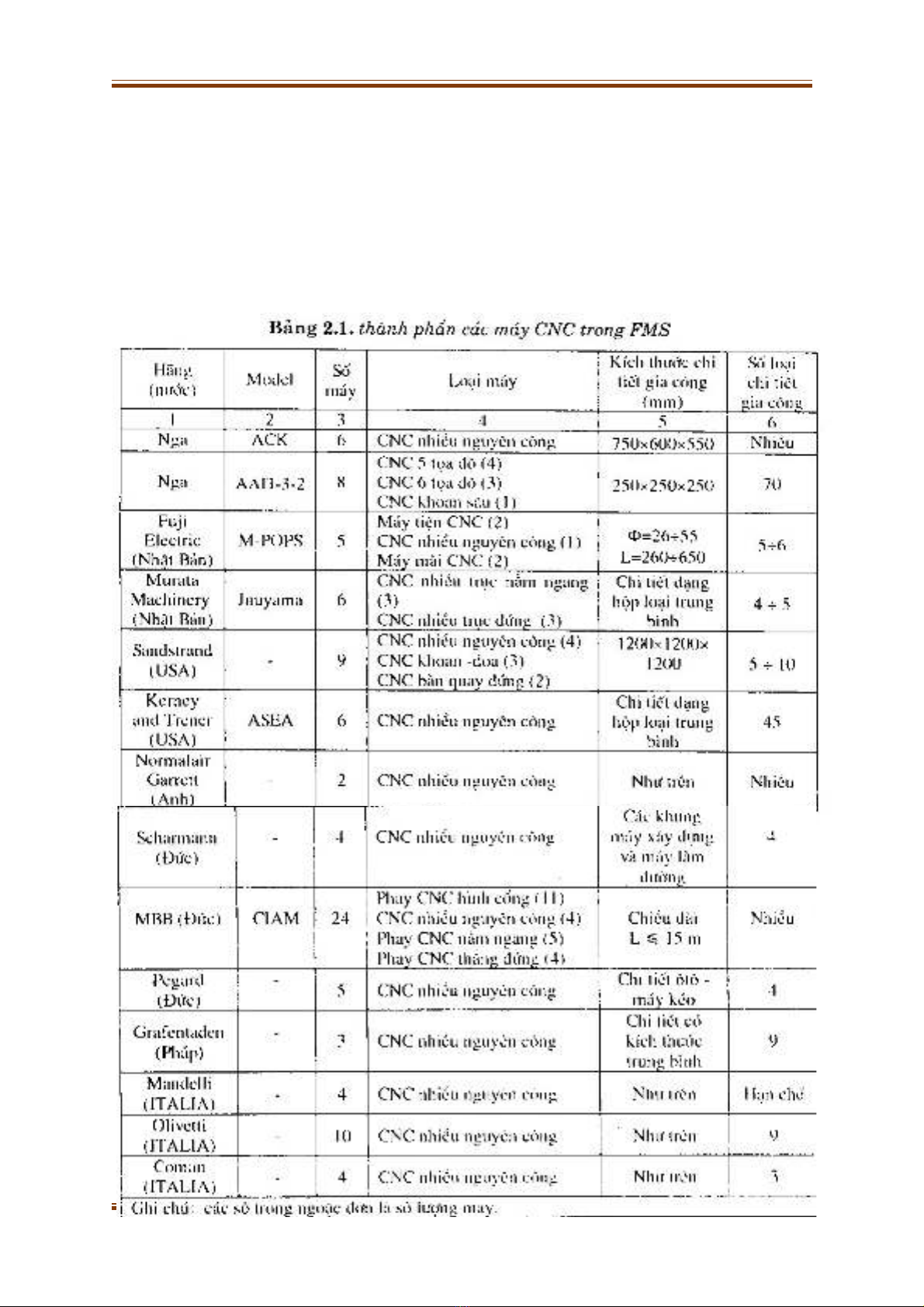 tóm tắt trong bảng 2.1. Trong FMS thông thường có khoảng 2÷24 máy.