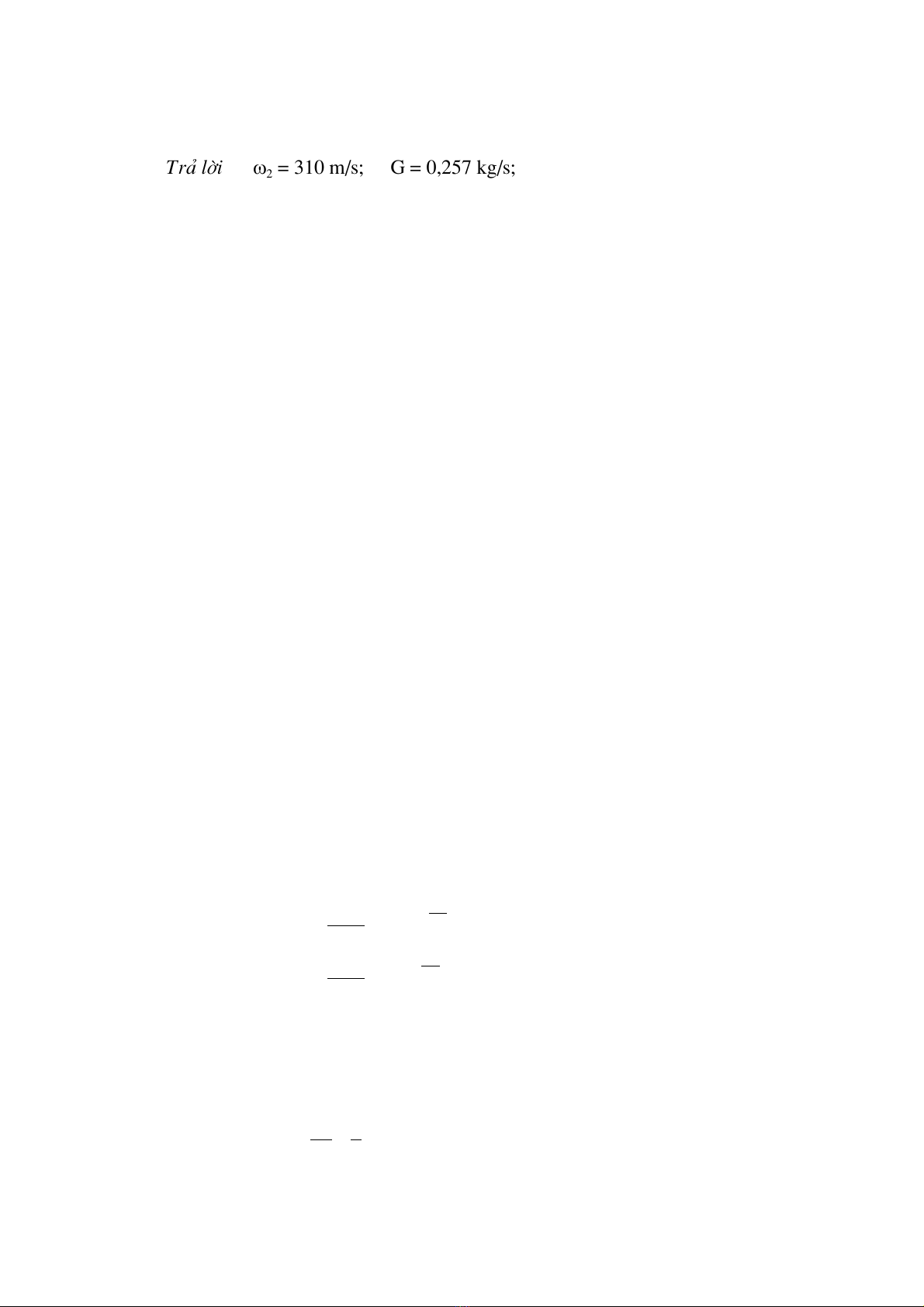 Tr¶ lêi ω2 = 310 m/s; G = 0,257 kg/s;