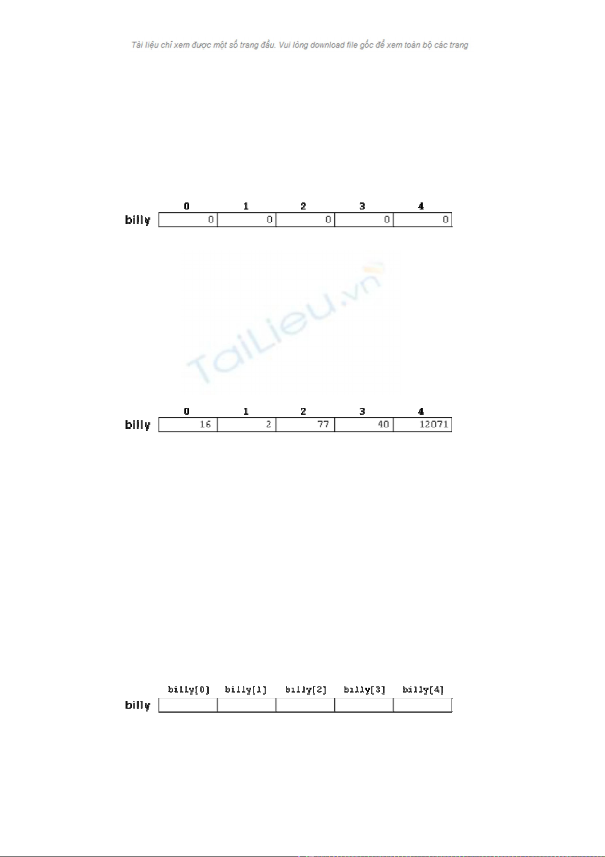 Ví dụ, ñể lưu giá trị 75 vào phần tử thứ ba của billy ta viết như sau: