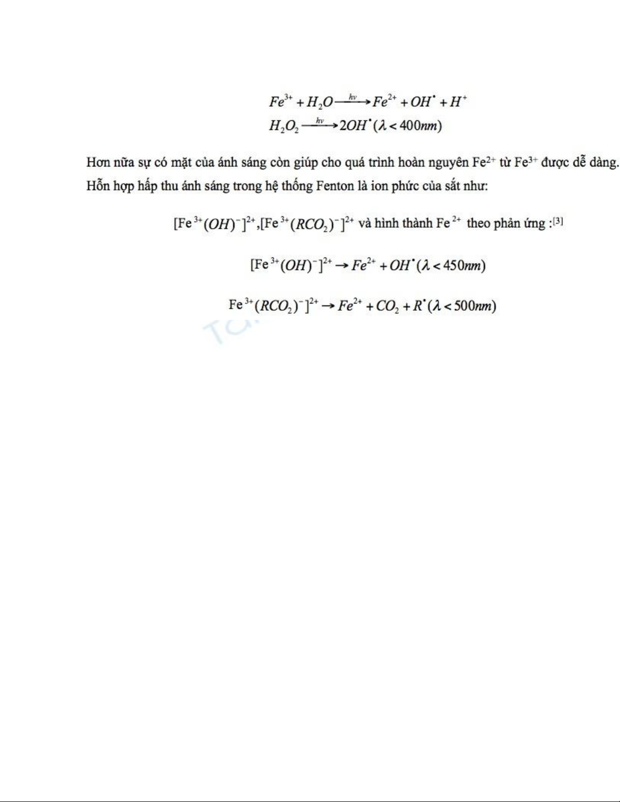 trình Fenton có thể được tăng mạnh khi có sự chiếu sáng