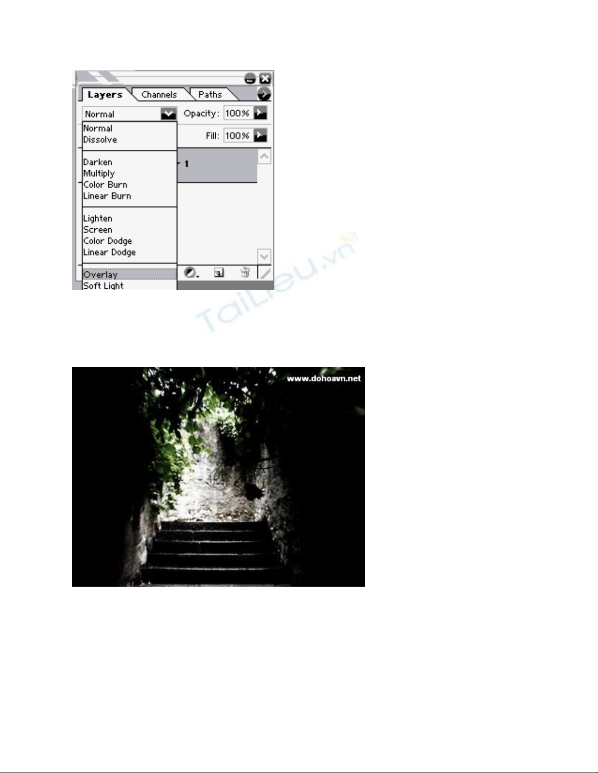 + Chọn chế độ hòa trộn là Overlay trên bảng thông tin layer