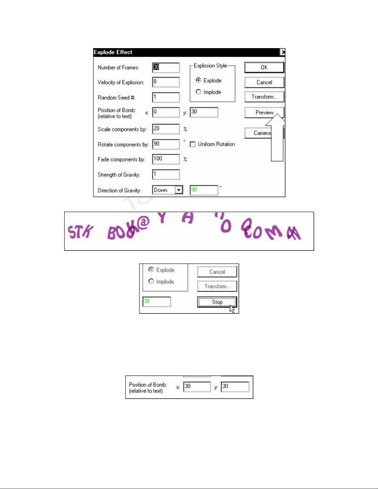 Hộp thoại Explode Effect xuất hiện với chế độ mặc định như sau: