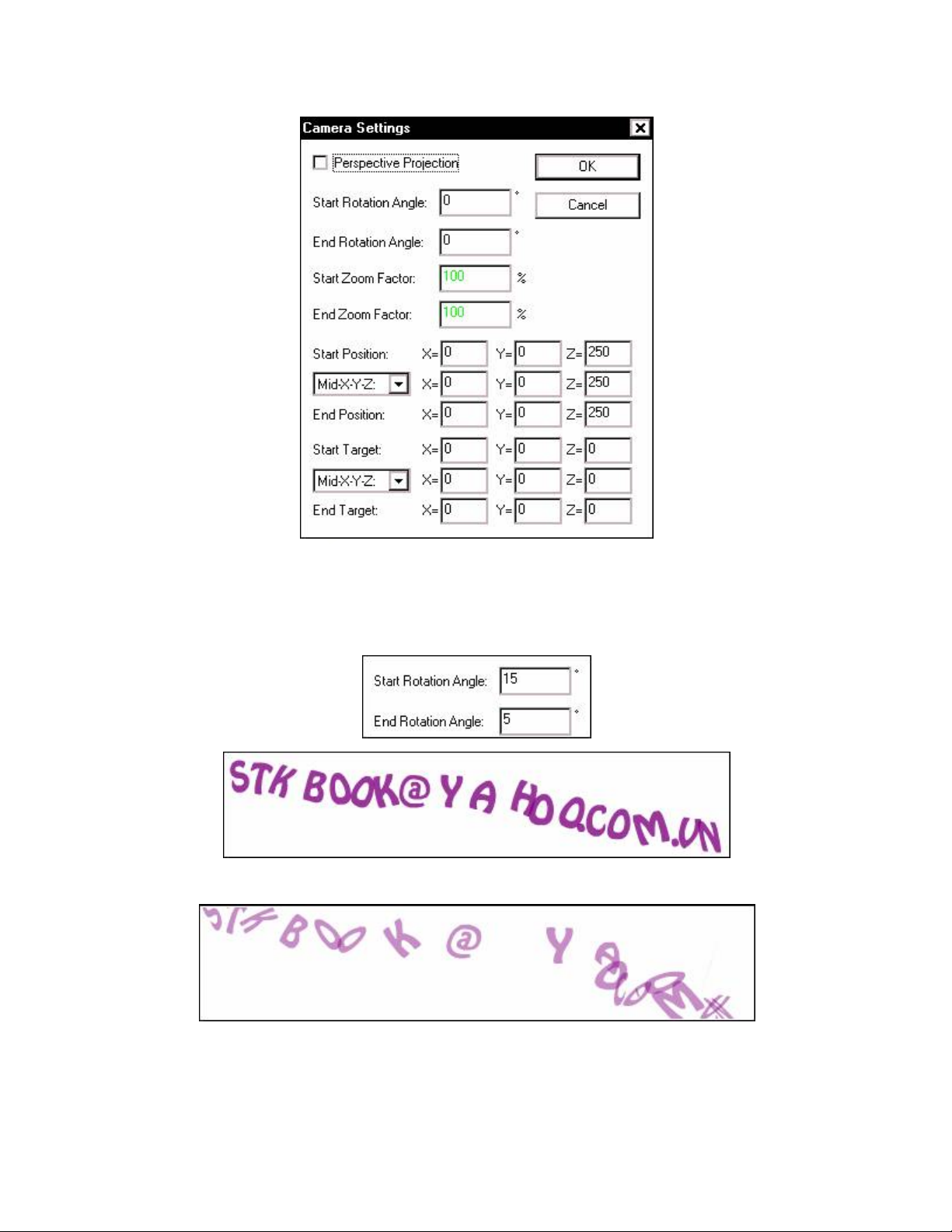 Start Rotation Angle và End Rotation Angle: Đặt góc quay của đối tượng trước khi bắt đầu