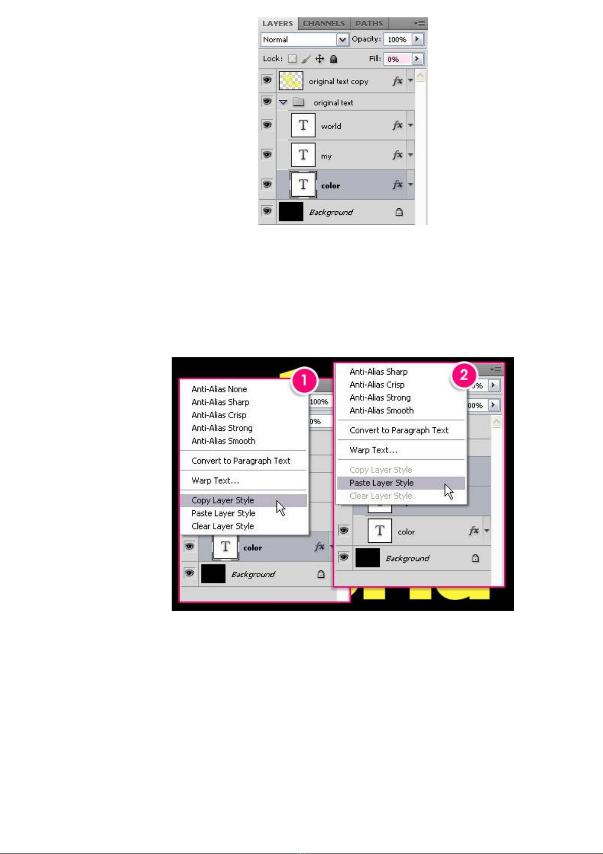 phải chuột vào layer mà bạnđã áp dụng Layer Style, chọn Copy Layer Style. Sau đó,