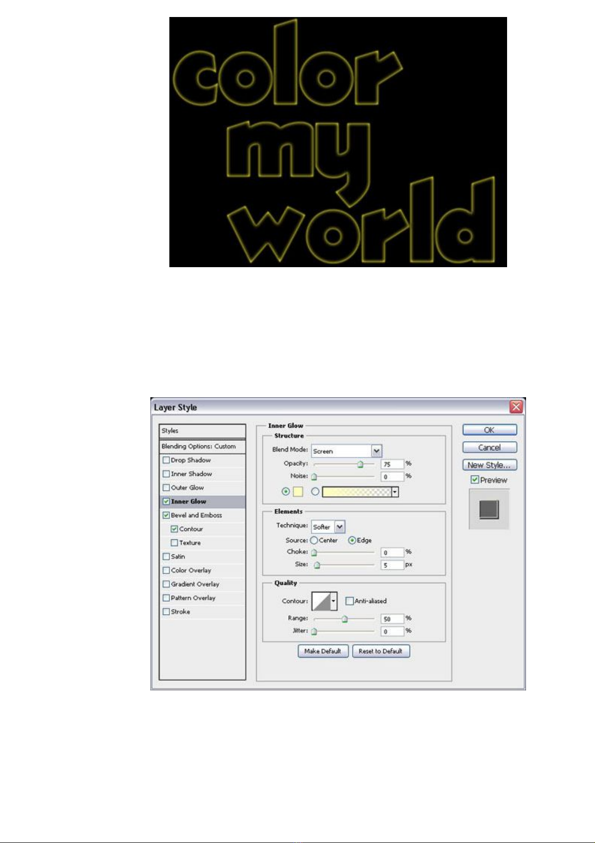 -Inner Glow: Để các giá trịnhưhọ đang theo mặcđịnh.