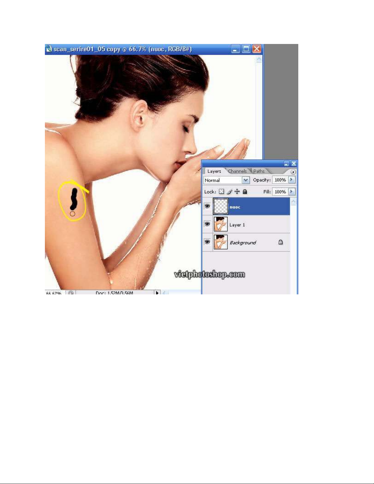 Dùng cọ này vẽ 1 vệt vào Layer như hình dưới