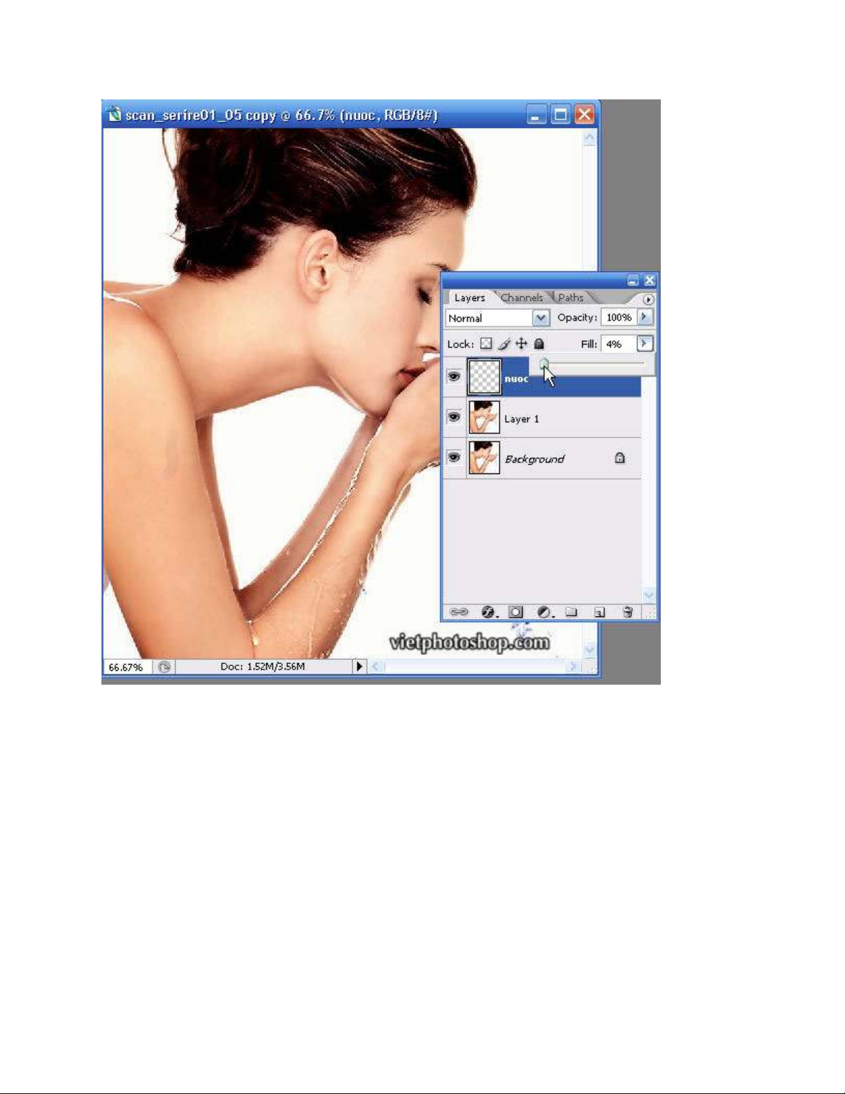 2) Bạn bắt đầu chuyển Layer này về dạng Transparent bằng cách cho Fill = 0