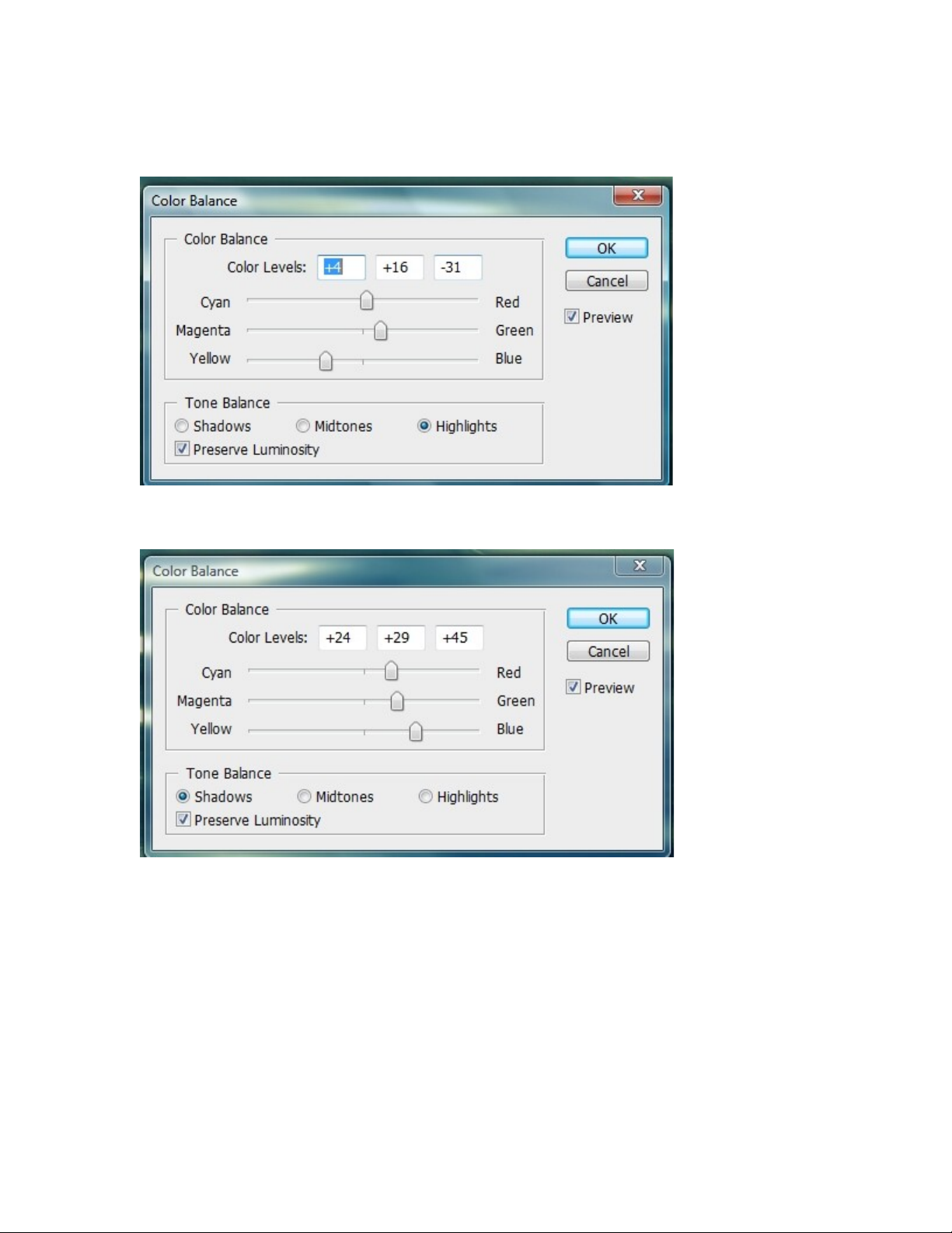 Image -> Adjustments -> Color Balance. S d ng thông s nh sau:ử ụ ố ư