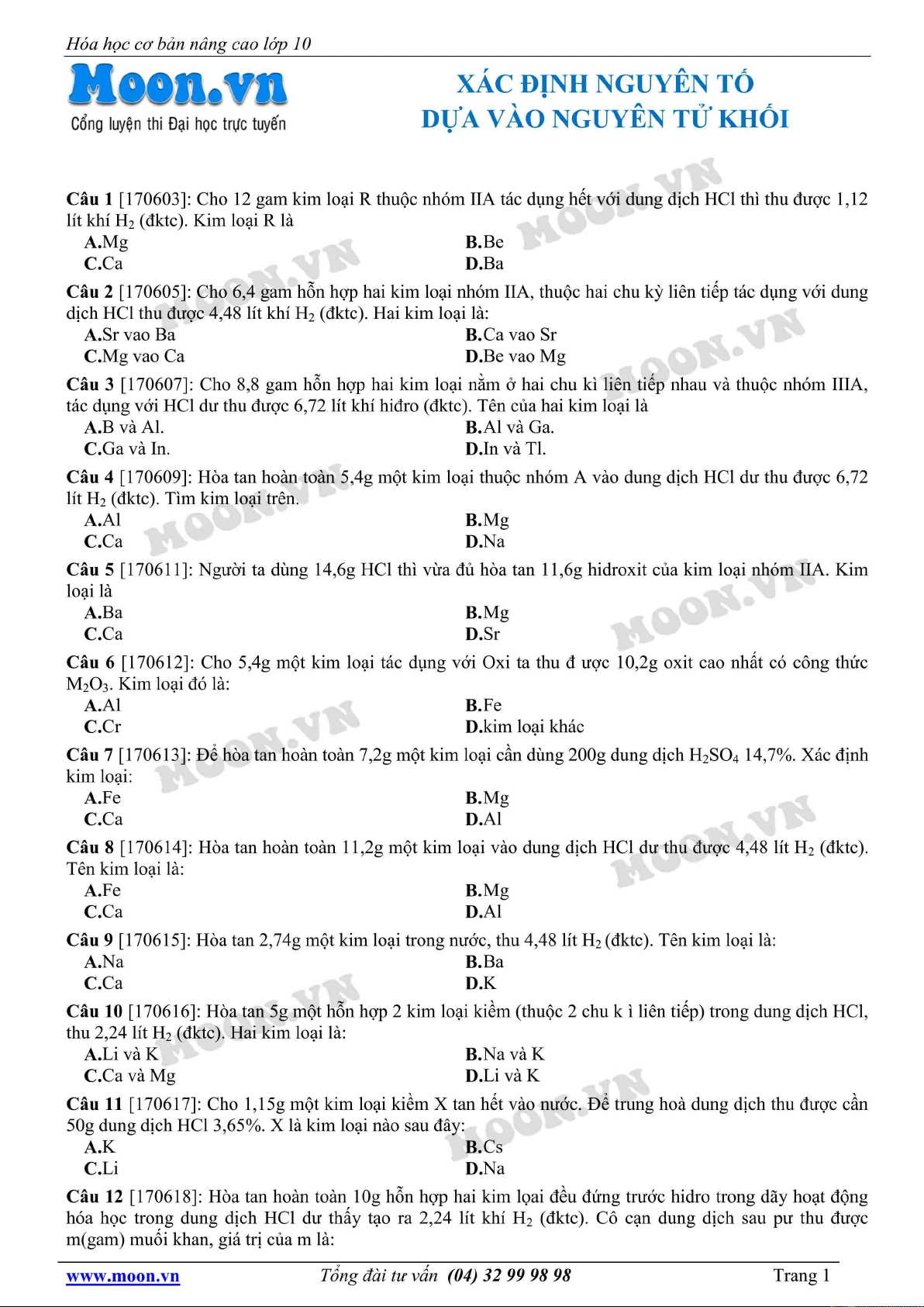 Tài liệu "Hóa học lớp 10: Xác định nguyên tố dựa vào nguyên tử khối" gồm 30 câu hỏi lý thuyết và bài tập với hình thức trắc nghiệm. Mời các bạn cùng tham khảo để ôn tập và bổ sung kiến thức đạt hiệu quả cao.