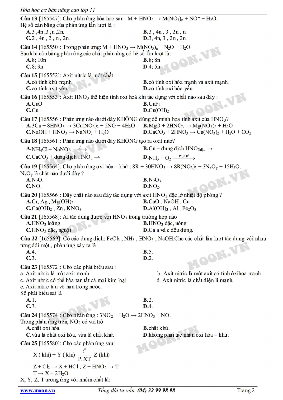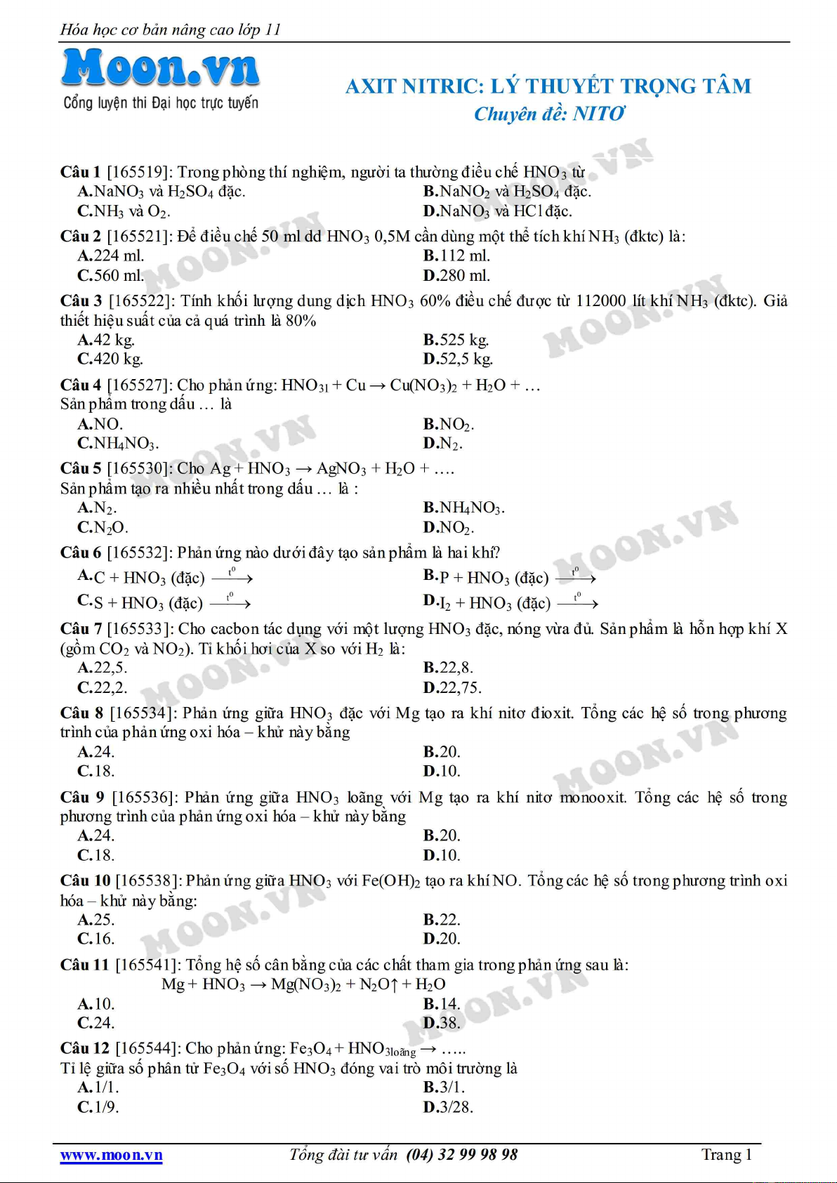 Tài liệu "Hóa học lớp 11 - Chuyên đề Nitơ: Axit nitric-lý thuyết trọng tâm" gồm 30 câu hỏi lý thuyết và bài tập với hình thức trắc nghiệm. Mời các bạn cùng tham khảo để ôn tập và bổ sung kiến thức đạt hiệu quả cao.