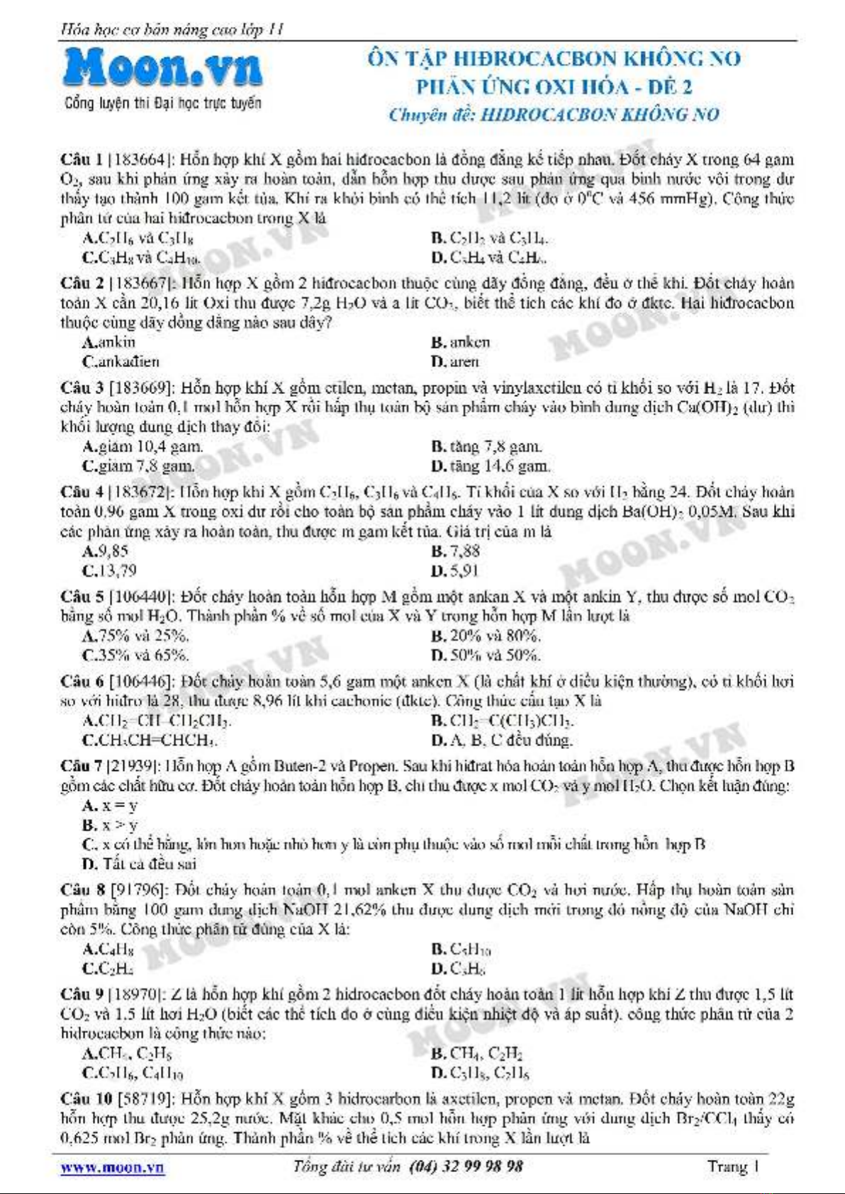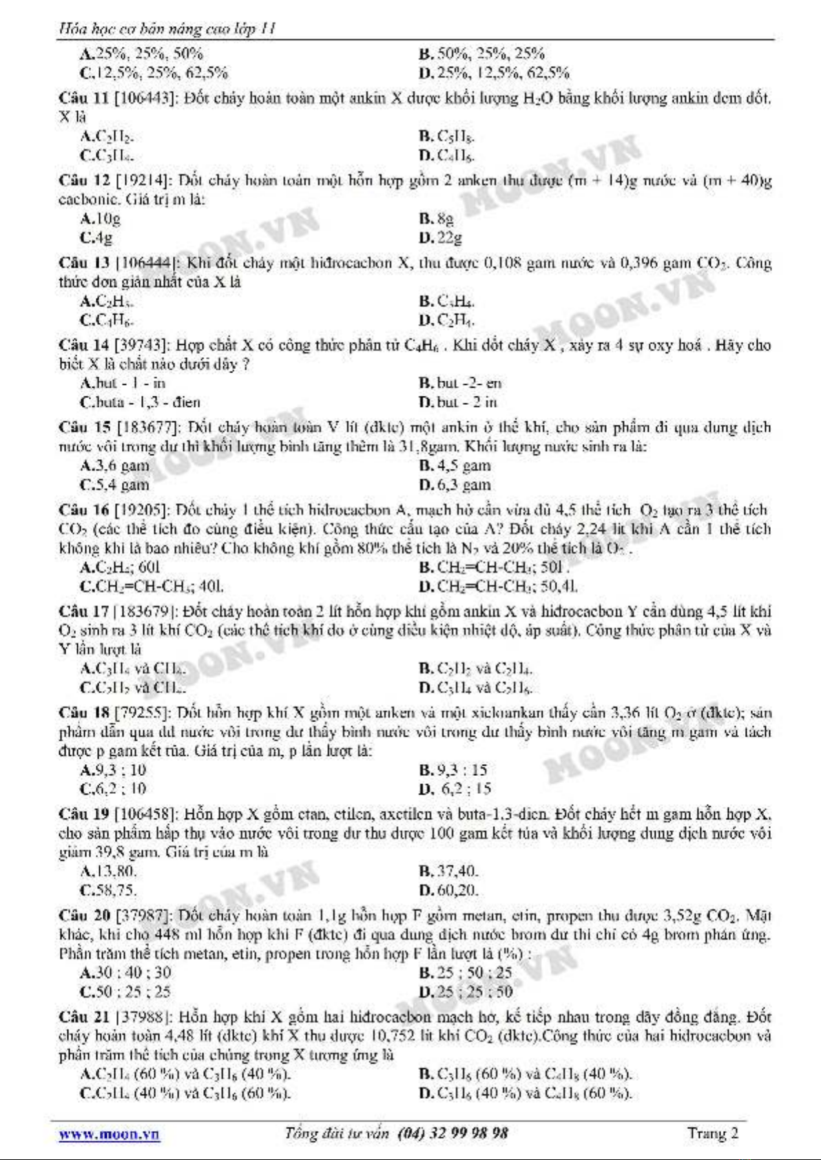Tài liệu "Hóa học lớp 11: Hidrocacbon không no-Phản ứng oxi hóa (Đề 2)" gồm 25 câu hỏi lý thuyết và bài tập với hình thức trắc nghiệm. Mời các bạn cùng tham khảo để ôn tập và bổ sung kiến thức đạt hiệu quả cao.