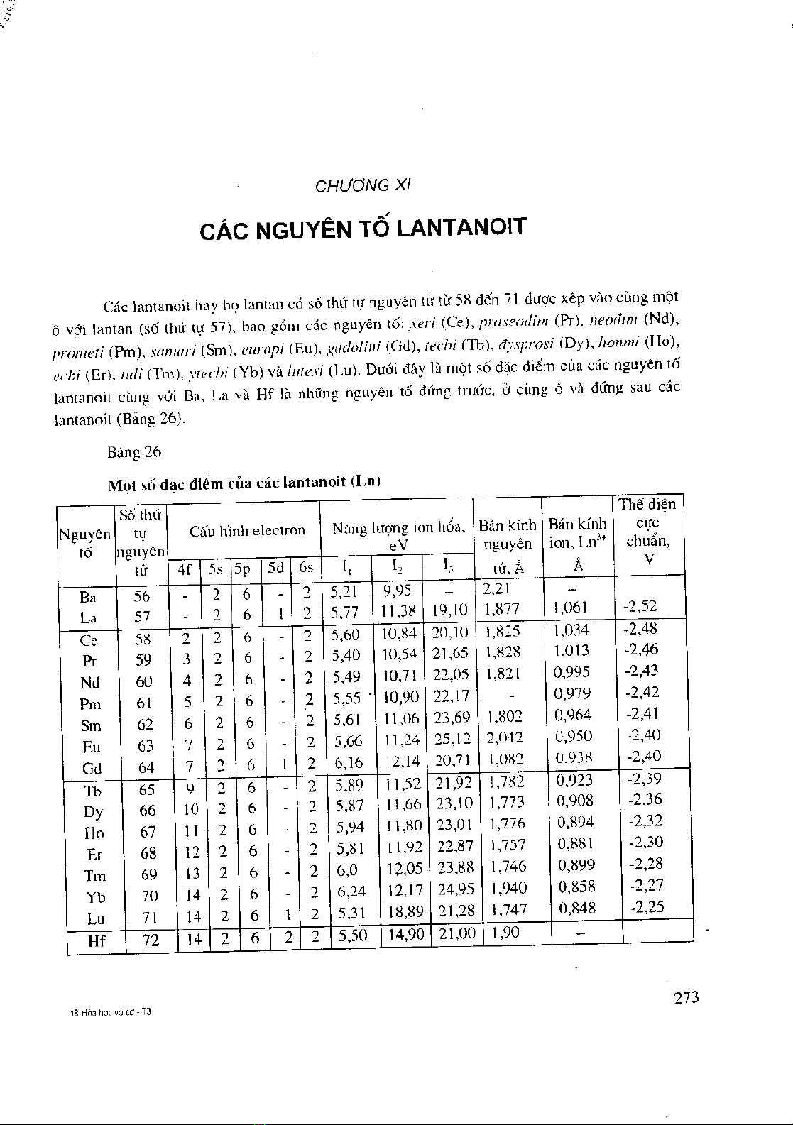 Tài liệu tham khảo giáo trình Hóa học vô cơ - Tập 3 : Các nguyên tố chuyển tiếp - Chương 11 : Các nguyên tố plantanoit , dành cho các bạn học chuyên ngành hóa học củng cố và bổ sung kiến thức hóa học của mình