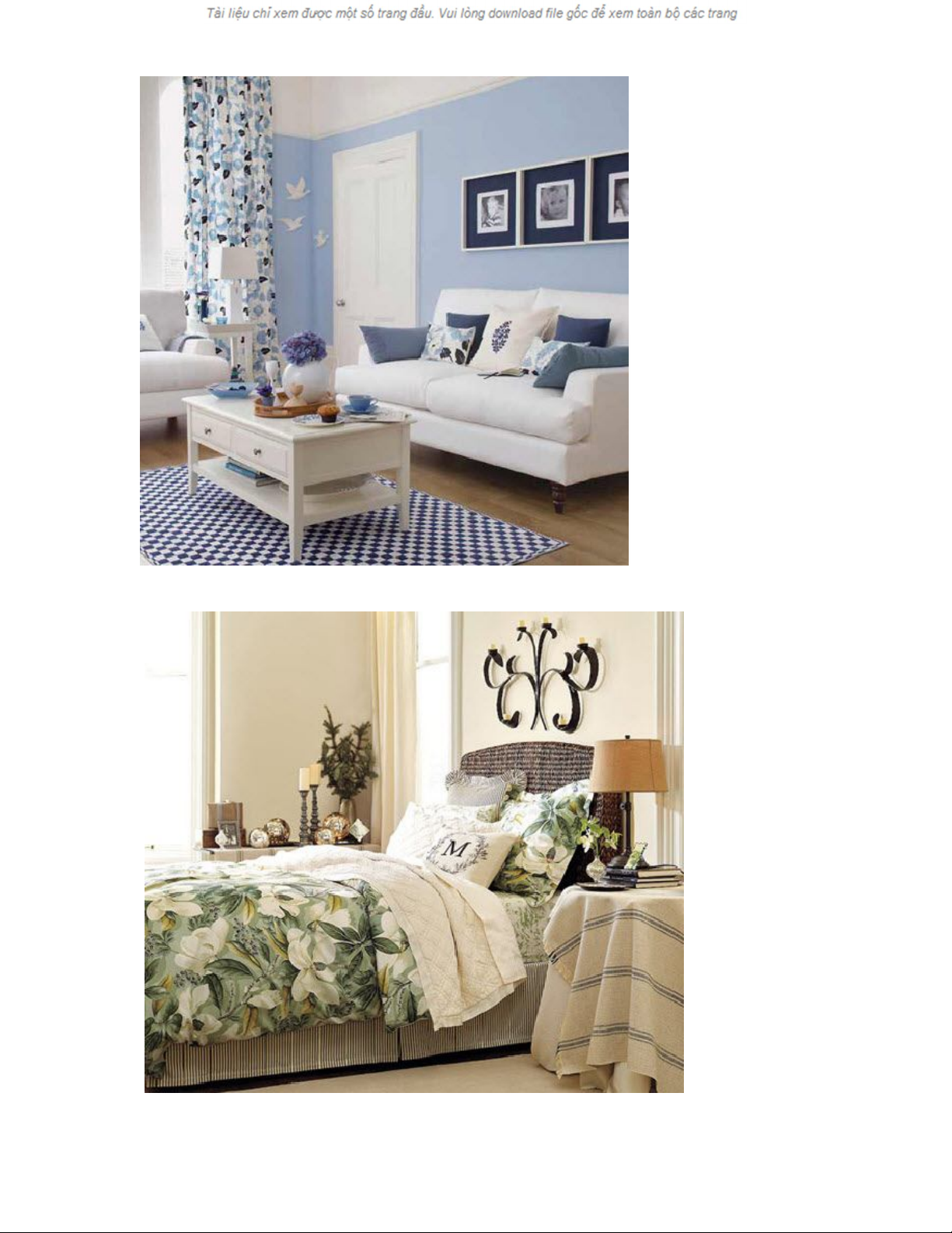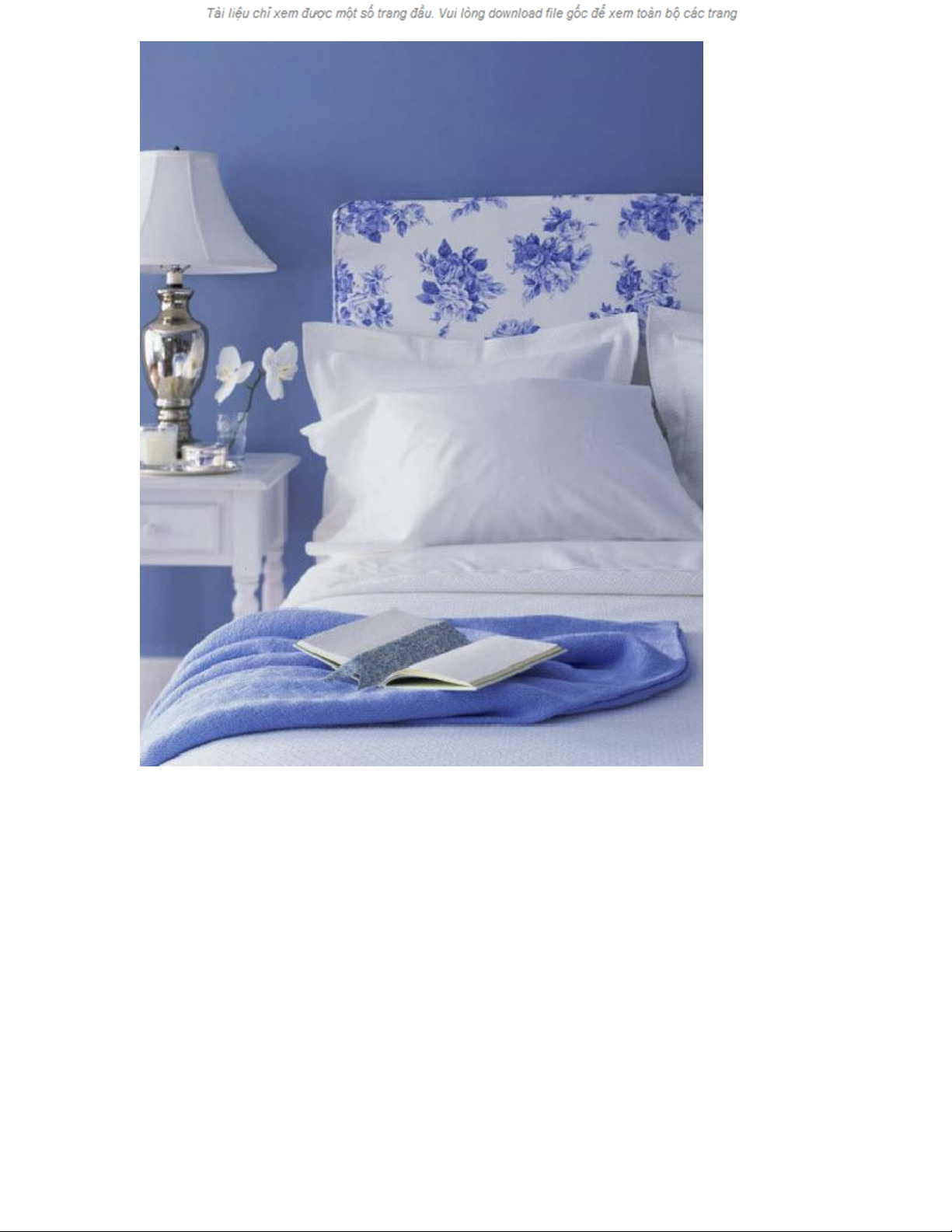 Căn phòng trang trí màu xanh và trắng cùng họa tiết thiên nhiên trông mát mắt.