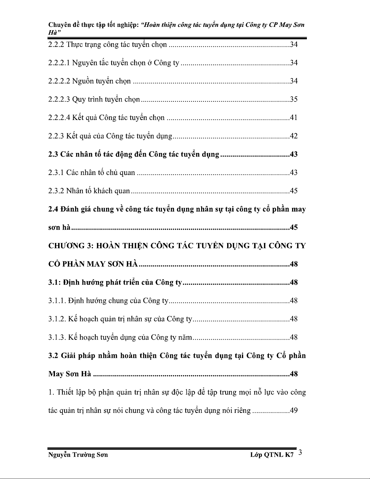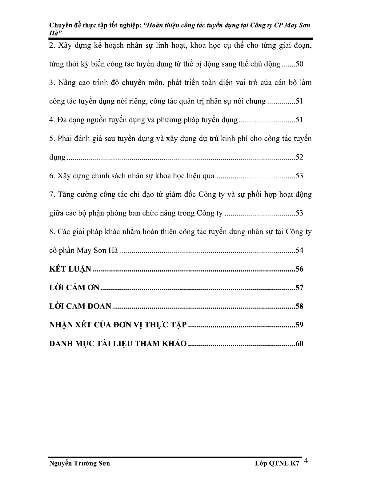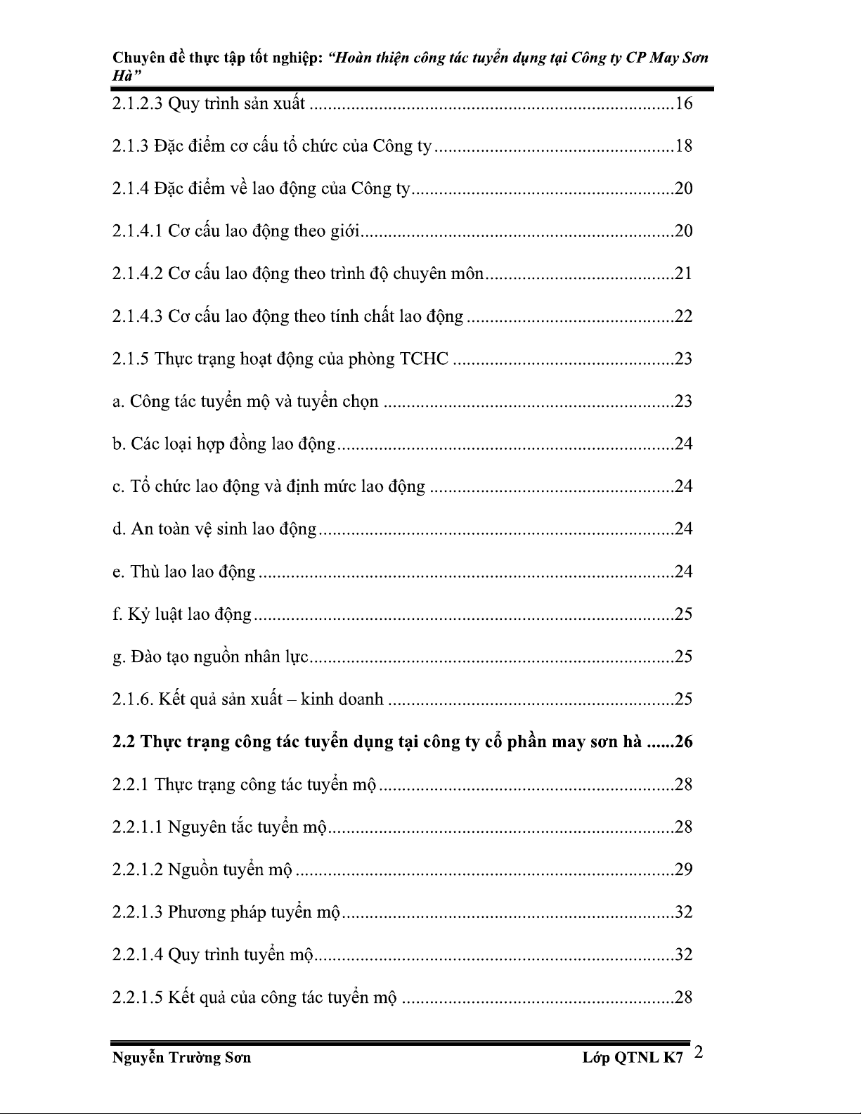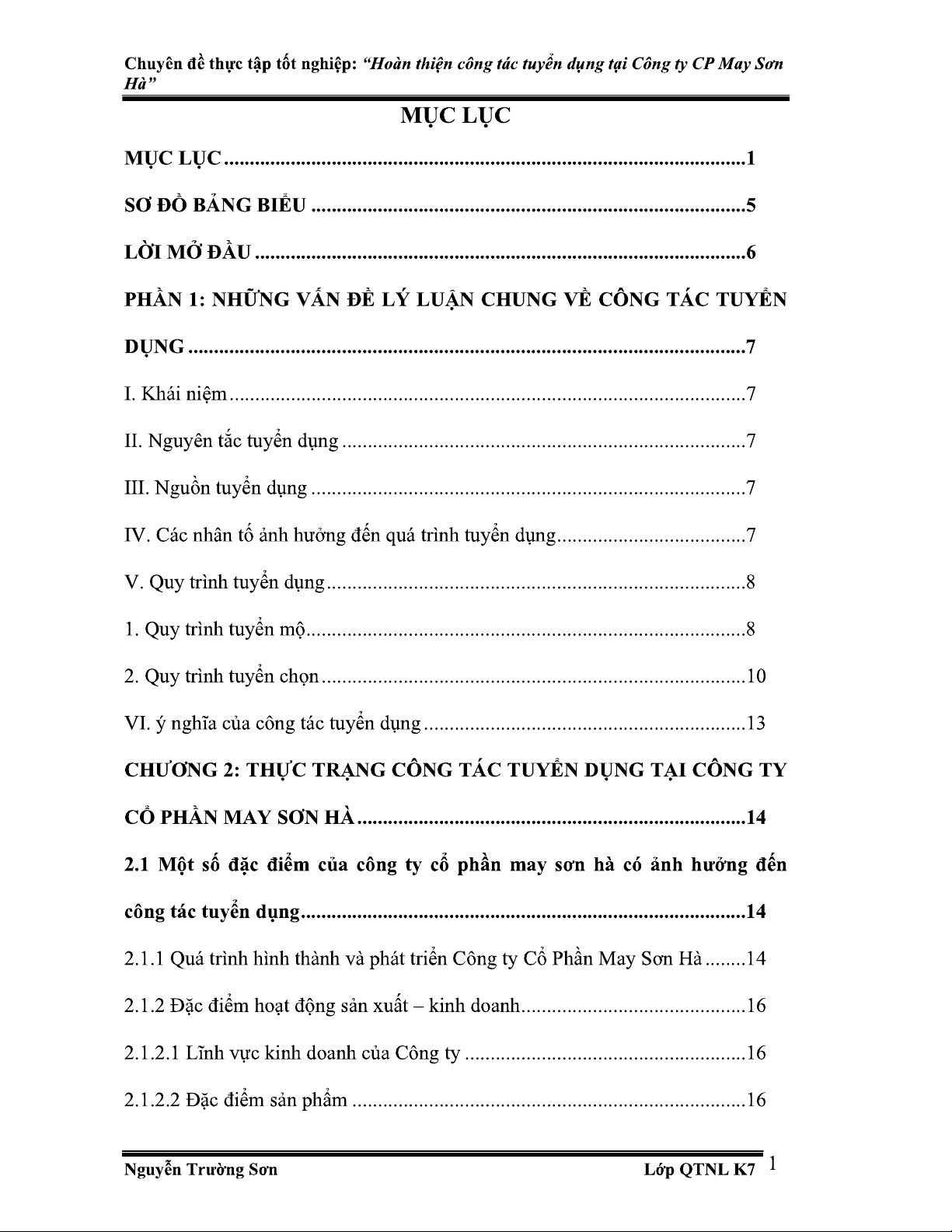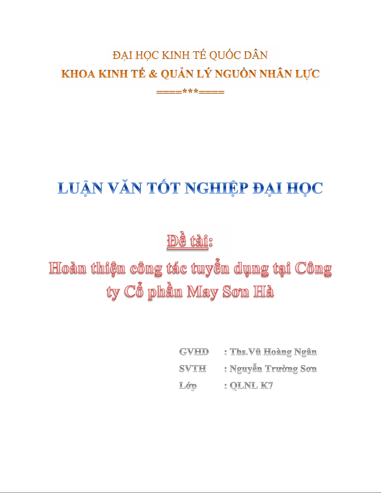 Luận văn tốt nghiêp: Hoàn thiện công tác tuyển dụng tại Công ty Cổ phần May Sơn Hà
