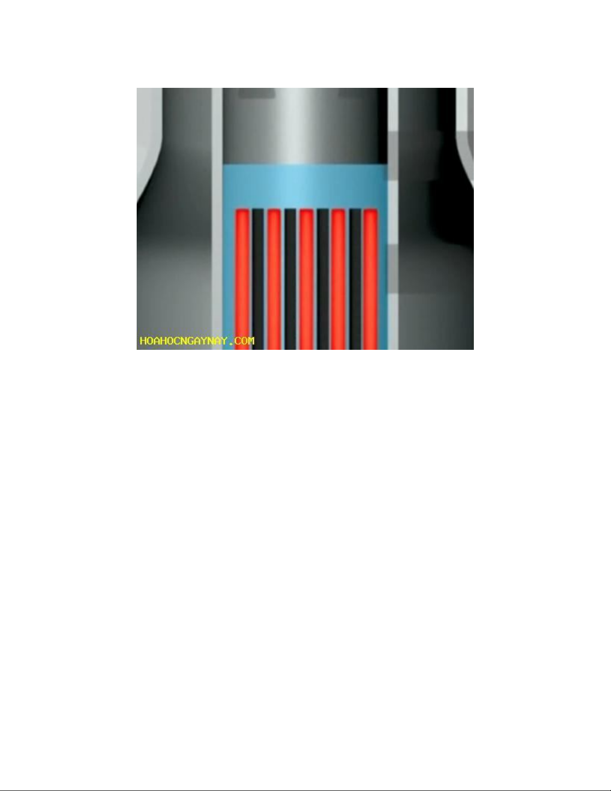 nạp vào các thanh nhiên liệu (màu đỏ) chìm trong nước. Các