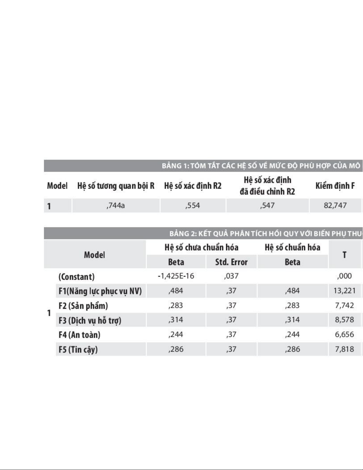 là 0,912, hình ảnh là 0,704, tin cậy là 0,746, dịch vụ hỗ trợ là 0,775; sự