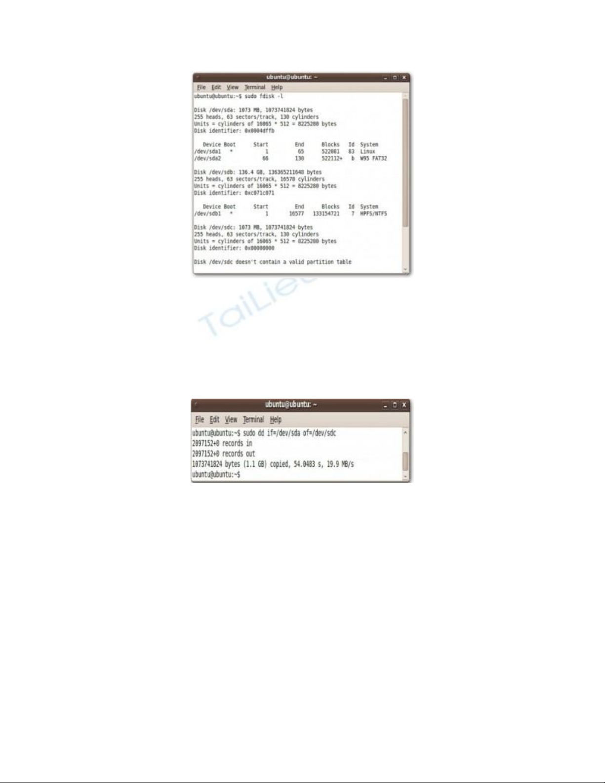 Bây giờ sử dụng dd : Gõ lệnh: “sudo dd if=/dev/sda of=/dev/sdc”.
